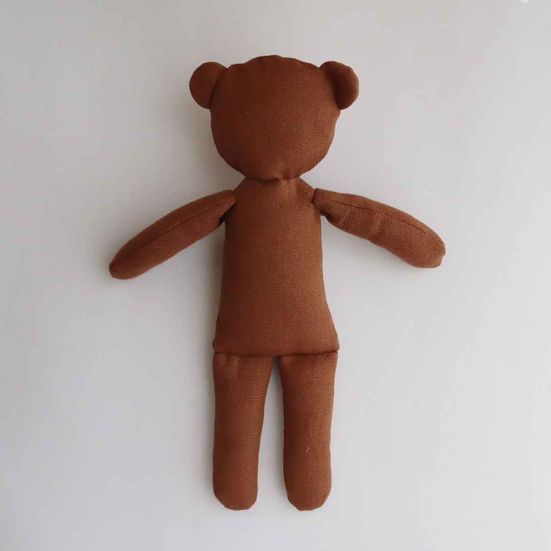 ぬいぐるみの生地は、ベルギーLIBECO社のリネンを使用。リネンならではの肌触りのよさでおもわず抱きしめたくなります。