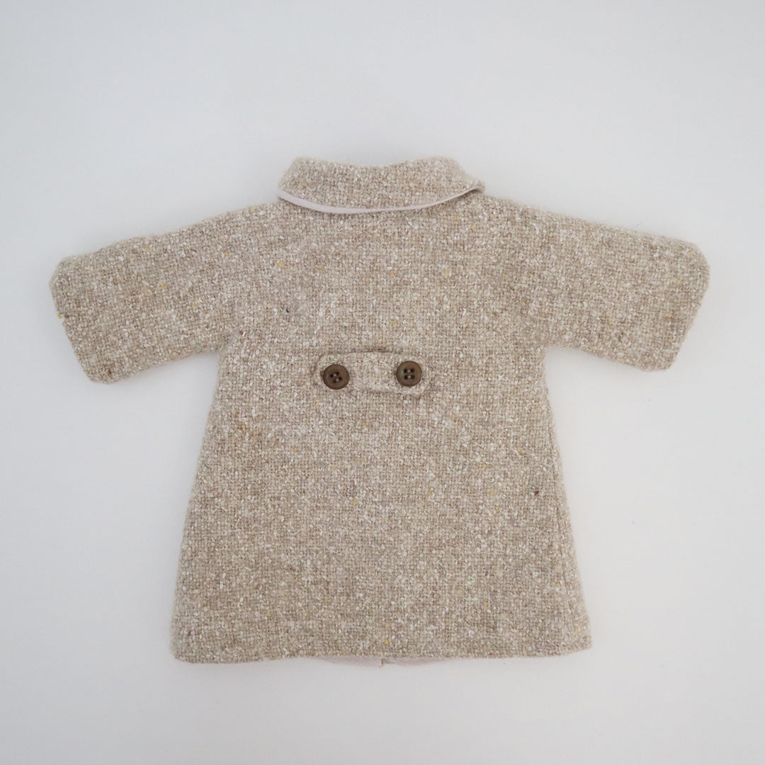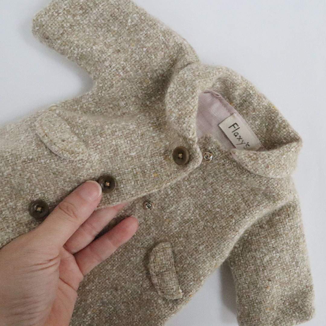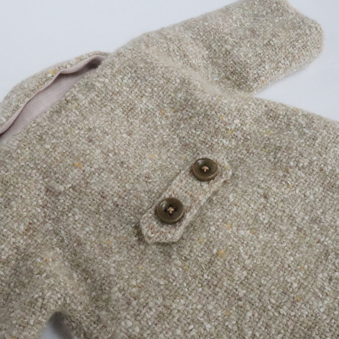 ウールのコート:表地「アンゴラシルクネップ」/ 裏地 LIbeco「マルタ」リネン100% / 水牛ボタン5個 / スナップボタン3個