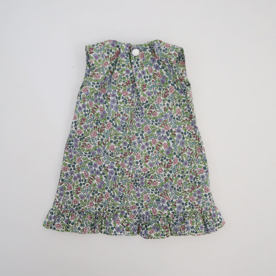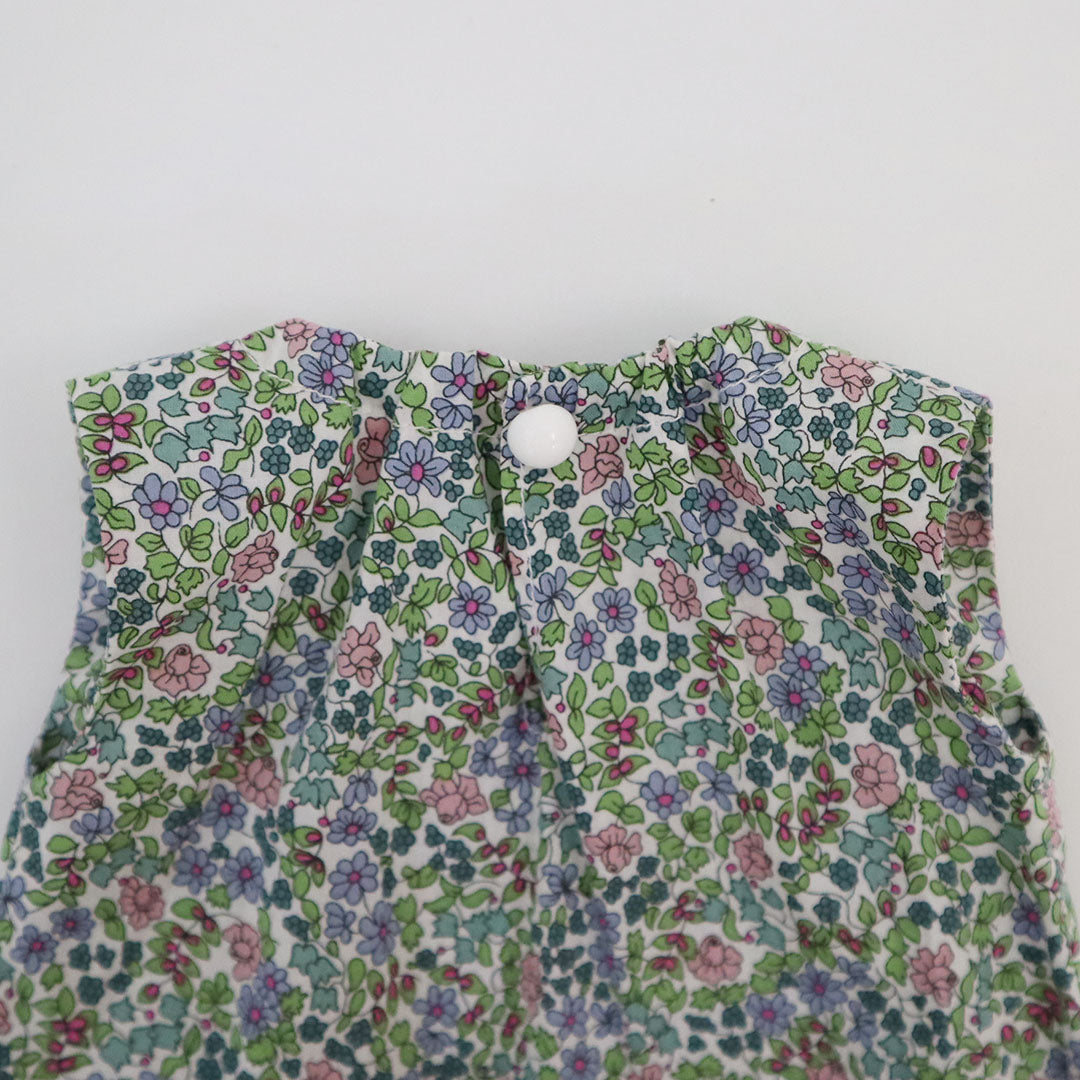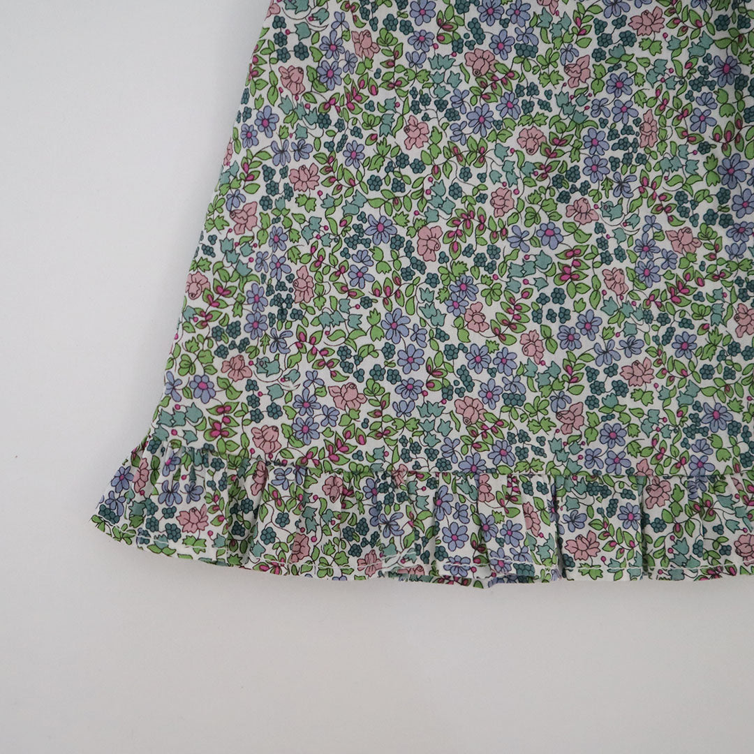花柄のワンピース:Liberty fabrics「エミリアス・フラワーズ」コットン100% / ゴム / 貝ボタン / スナップボタン カシュクールワンピース:Liberty fabrics「ギンガムチェック」コットン100%