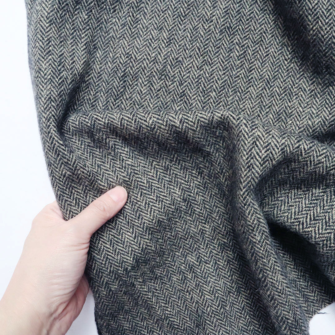 柔らかな肌触りと心地よい温かさの上質なウールのヘリンボーン生地は、パンツや、ジャケット、コートなどのアウターにおすすめです。