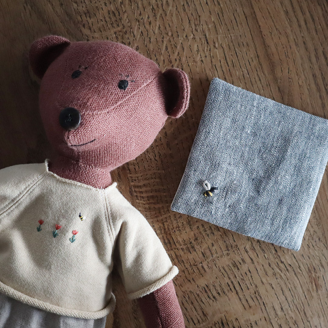 ▲みつばちの刺繍はくまのクゥクゥの刺しゅうのカットソーとお揃いです
