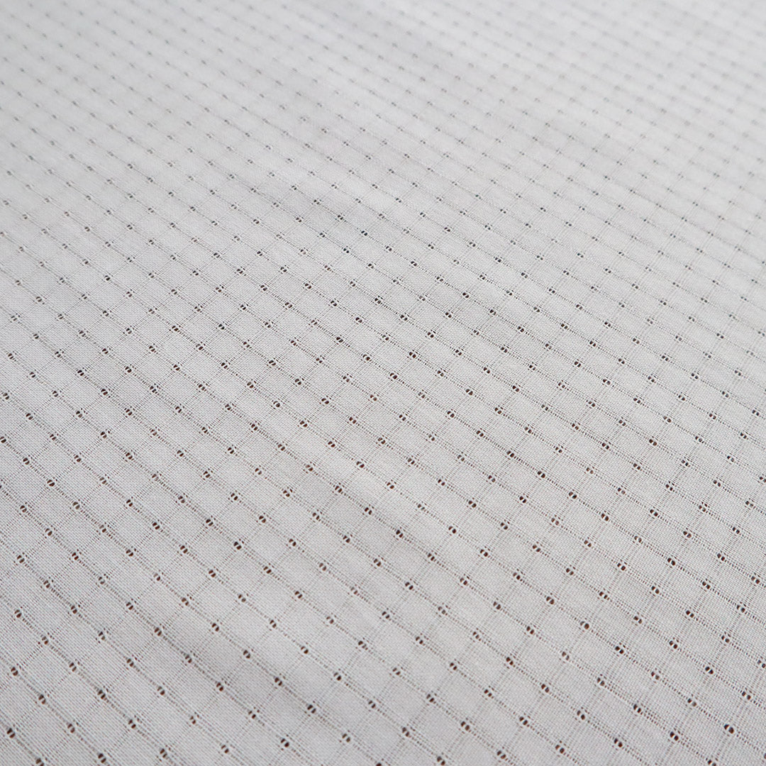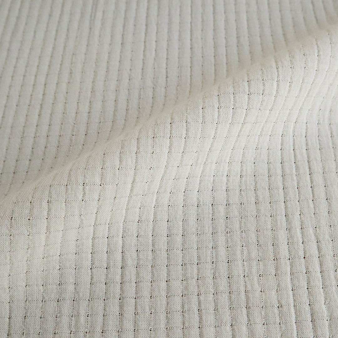 ねじりながら交差させた経糸に緯糸を通すことでできる隙間により、繊細で通気性のある生地に仕上がります。