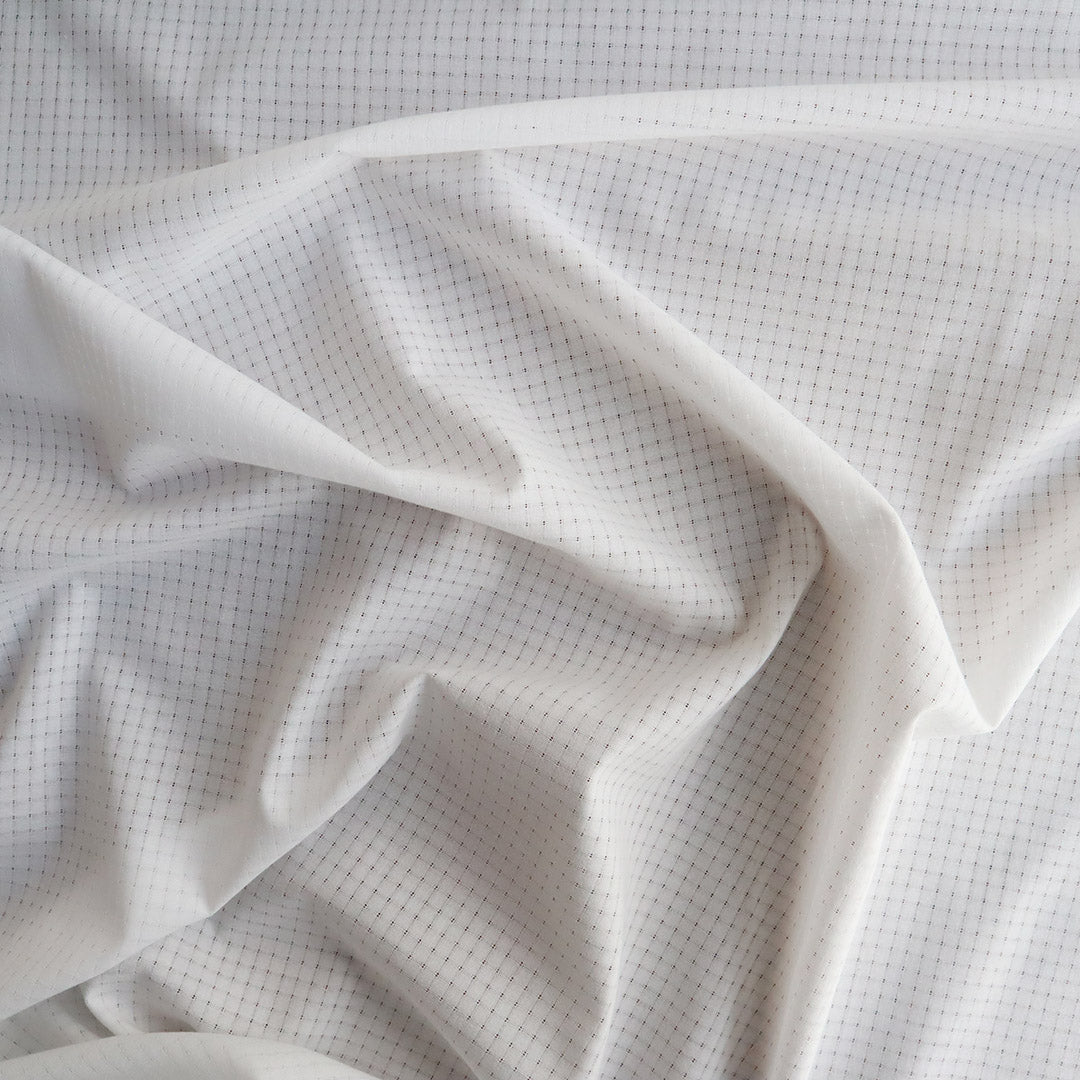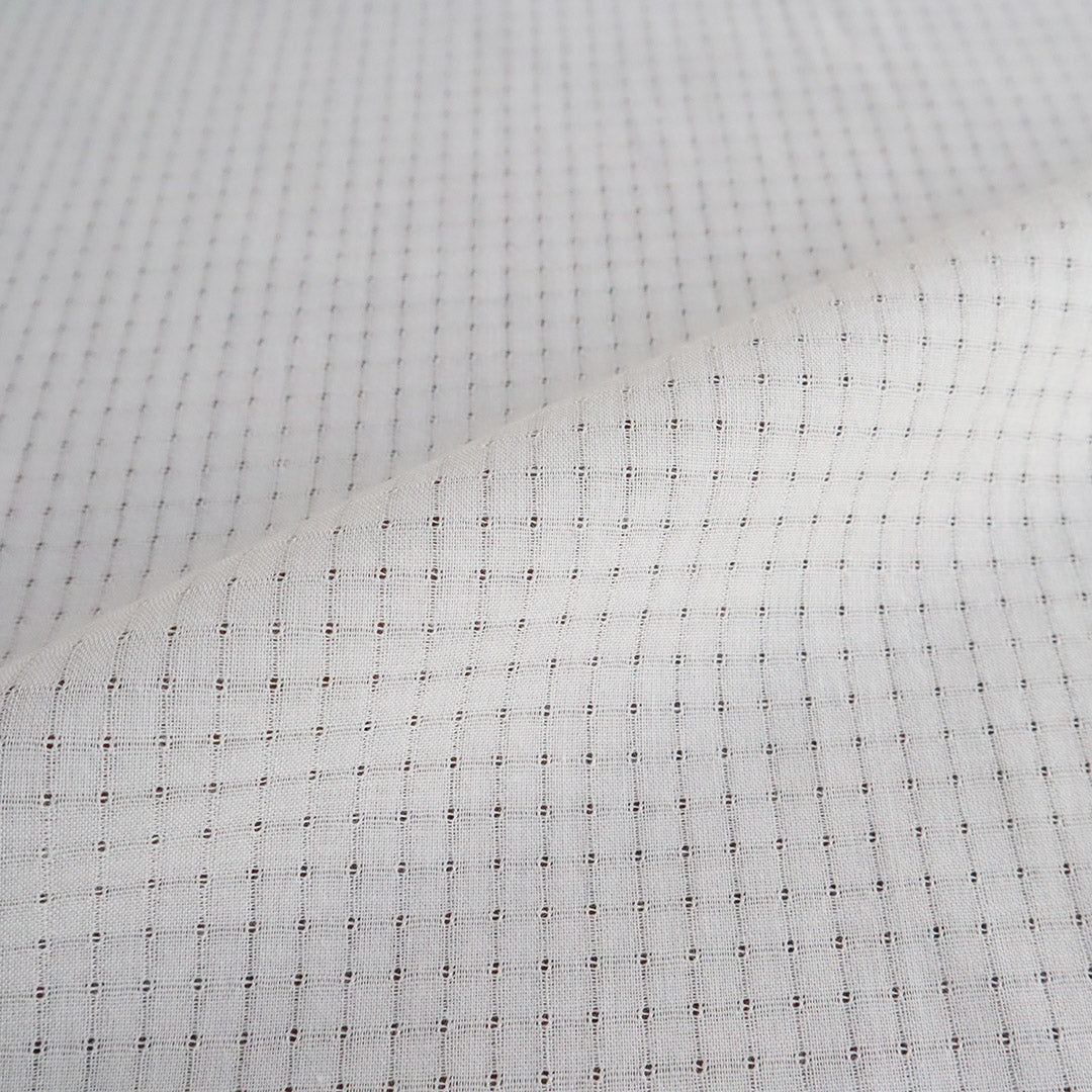 小さな格子柄が涼しげ。軽くてふわりと優しい肌触りなので夏の季節のブラウスやインナーにおすすめです。