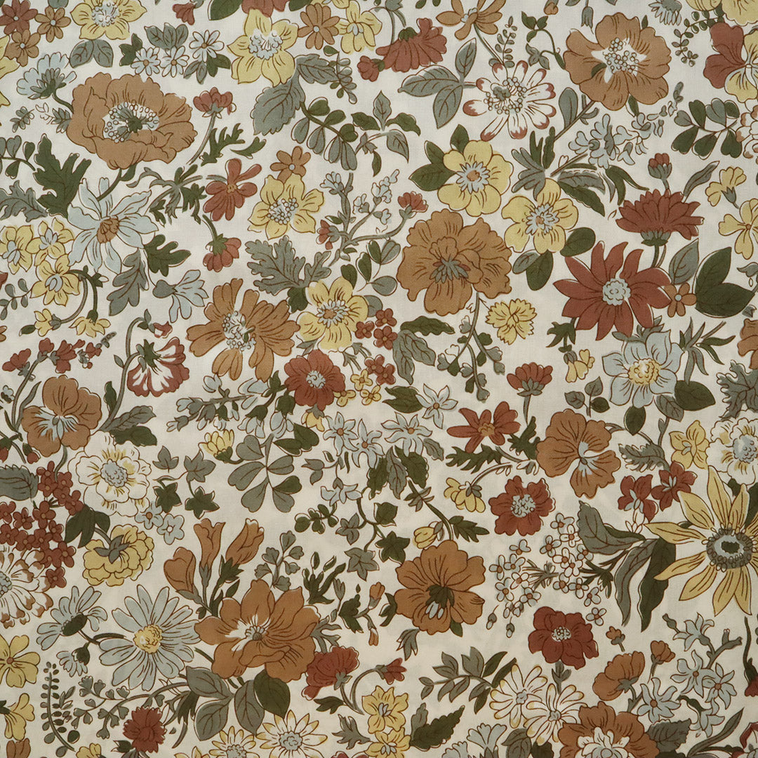 1940年代のリバティプリントから作られたデイジー・モリシアは、春の花々が咲き乱れる楽しい草原のようです。パンジー、ポピー、ゼラニウム、バラ、スイートピー、デイジー、マーガレット、ダイコンソウの花々が、リバティのボタニカルプリントの真髄を表現しています。ロマンスとノスタルジーを感じさせるこのデザインは、古典的な英国の植物が持つ時代を超えた魅力を表現しています。