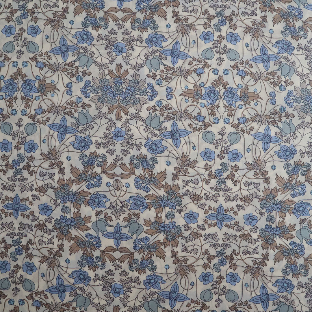 1940年代のリバティプリントから作られたデイジー・モリシアは、春の花々が咲き乱れる楽しい草原のようです。パンジー、ポピー、ゼラニウム、バラ、スイートピー、デイジー、マーガレット、ダイコンソウの花々が、リバティのボタニカルプリントの真髄を表現しています。ロマンスとノスタルジーを感じさせるこのデザインは、古典的な英国の植物が持つ時代を超えた魅力を表現しています。