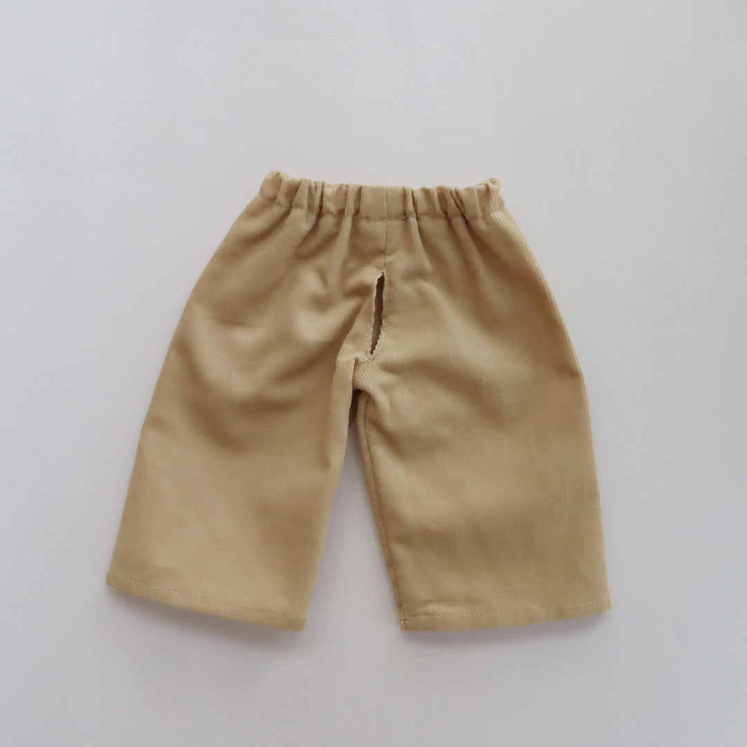 セットになったコーデュロイのワイドパンツはタックが入ったシンプルなスタイル。カーディガンと合わせて秋のおしゃれな着こなしを楽しめます。
