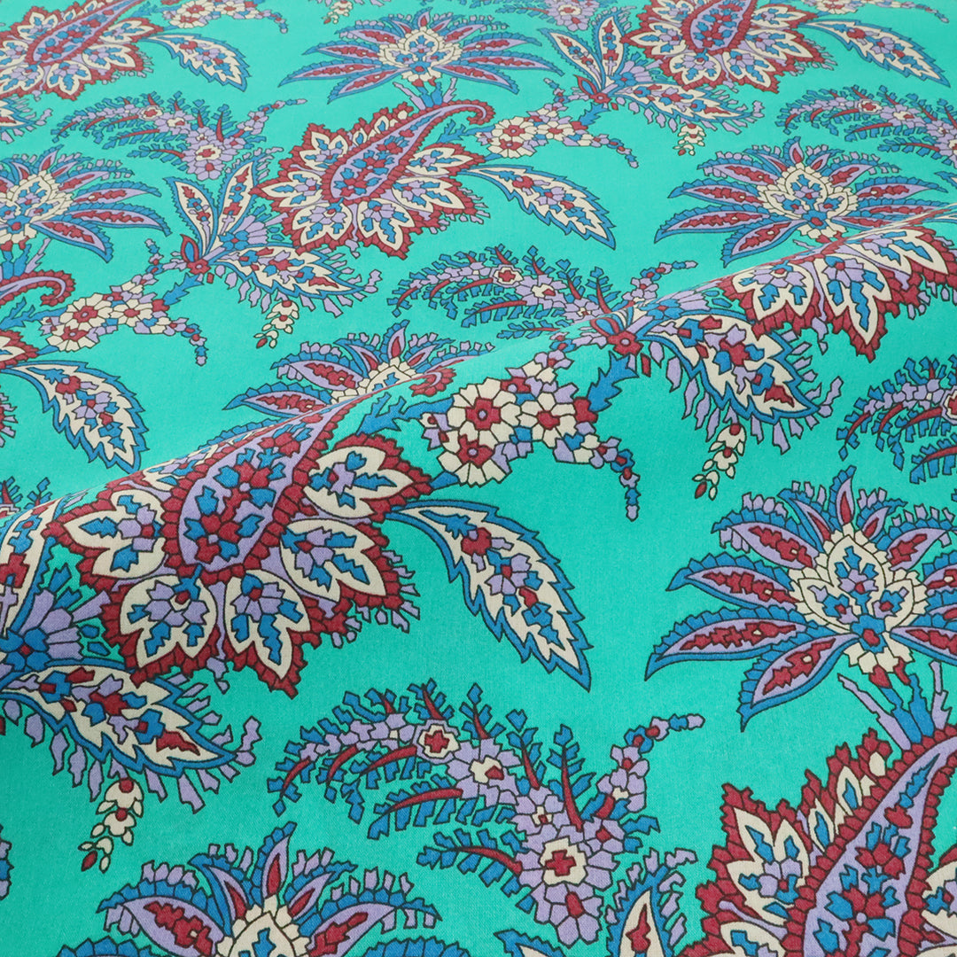1960年代から1970年代にかけてヒッピーがペイズリー柄を好んだ時代に、1963年にリバティのためにプリントされた、サイケデリックなシダ植物をモチーフにした「アランデル」。フローレンス・ウェルチが愛用した見事な折衷的デザインは、リッチなジュエルトーンを背景に、トロピカルで現代的なひねりが加えられています。