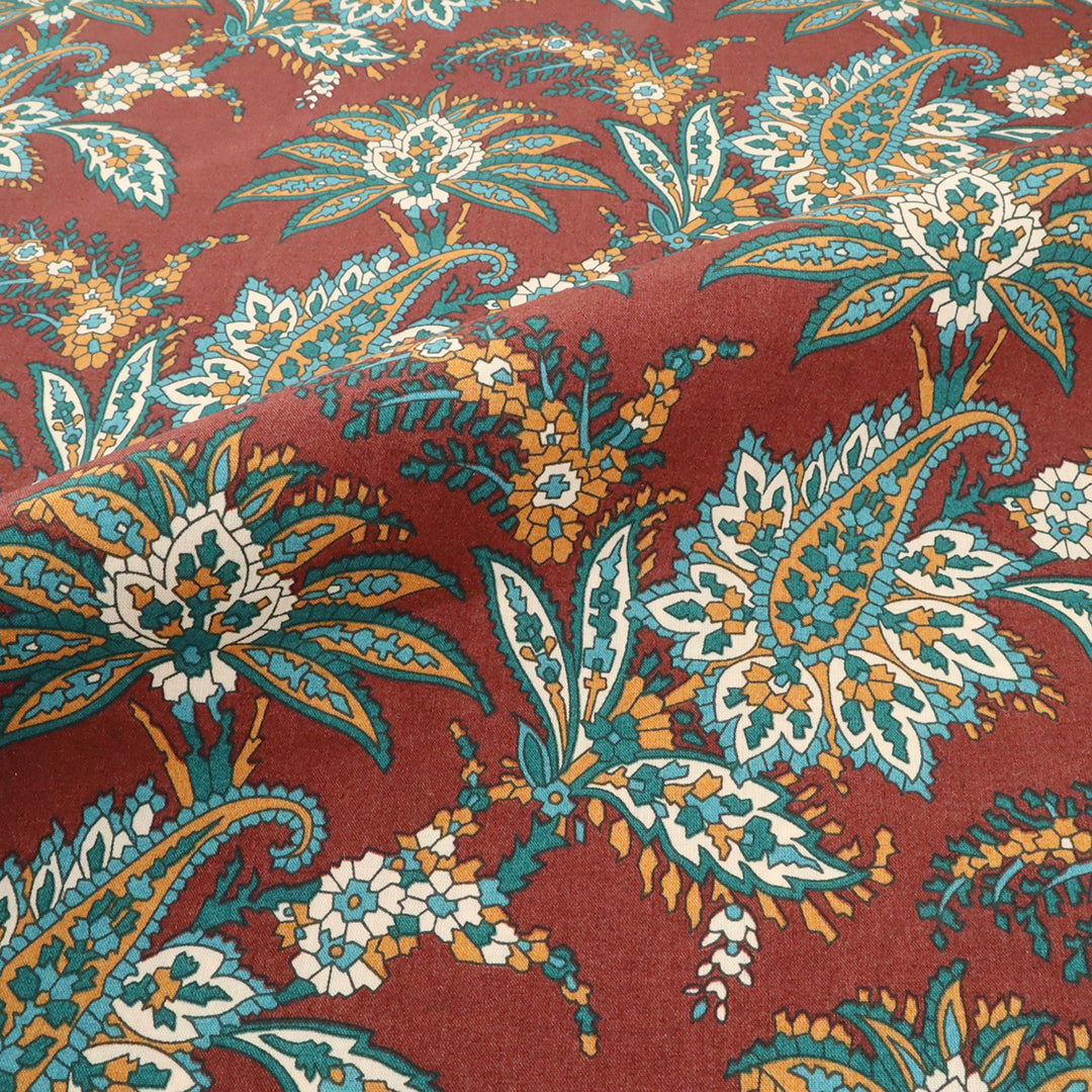 1960年代から1970年代にかけてヒッピーがペイズリー柄を好んだ時代に、1963年にリバティのためにプリントされた、サイケデリックなシダ植物をモチーフにした「アランデル」。フローレンス・ウェルチが愛用した見事な折衷的デザインは、リッチなジュエルトーンを背景に、トロピカルで現代的なひねりが加えられています。