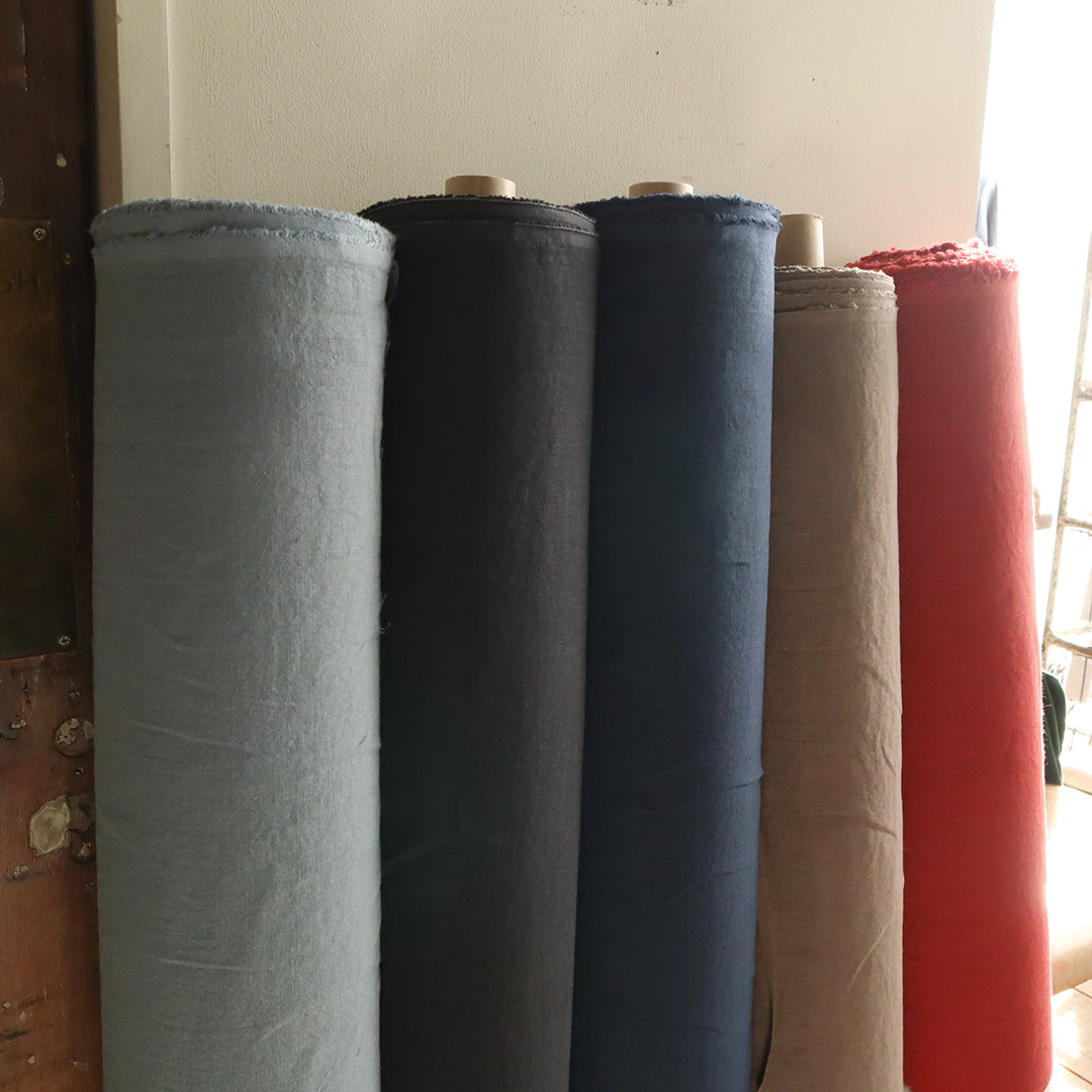 やわらかくしなやかな手触りの国産の平織りのリネン。