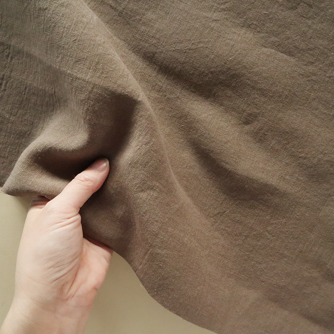 しっかりとした中地のリネンで透け感もなく、スカートやパンツ、ワンピースなどのアイテムにおすすめです。
