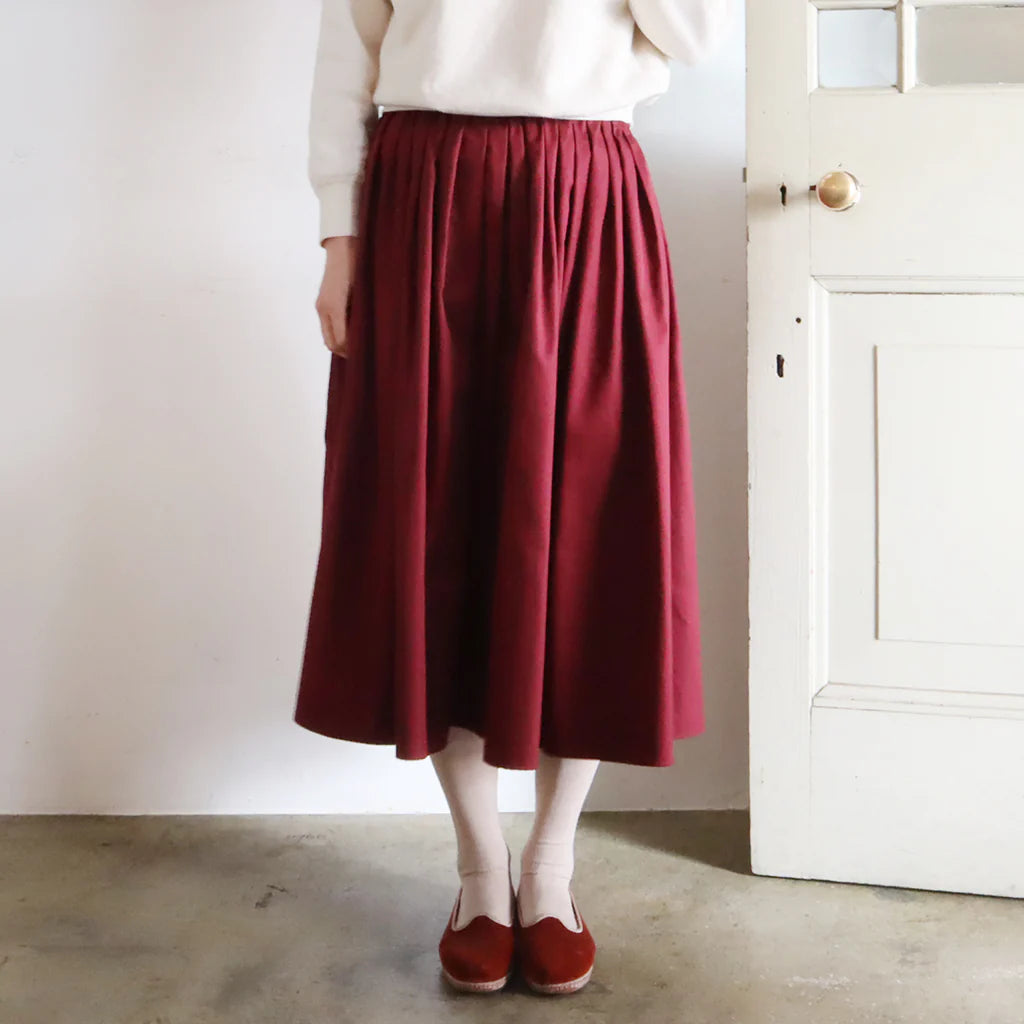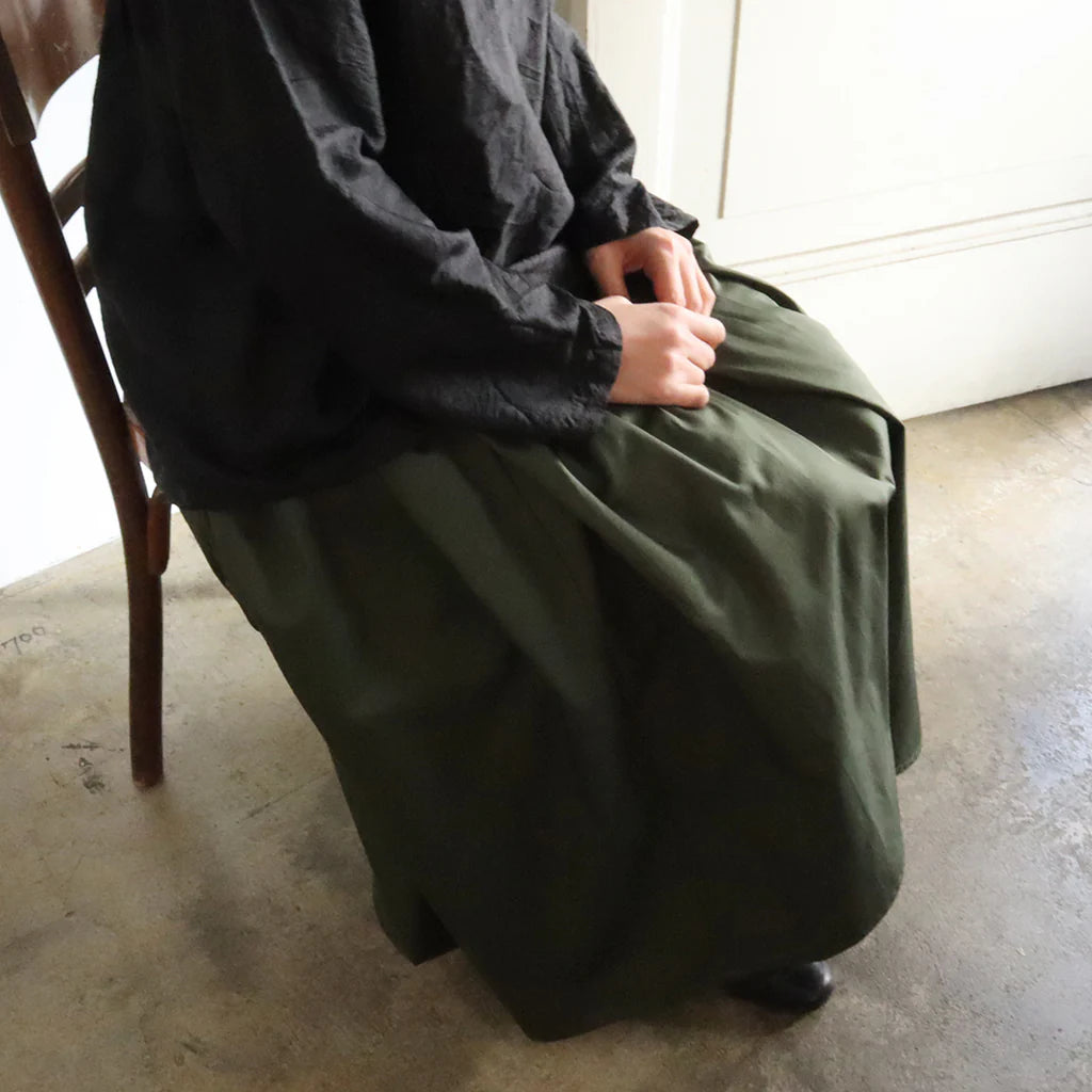 生地はイタリア Solbiati社の綾織り生地ギャバジン。光沢と張りがあり上品なスカートに仕上がります。