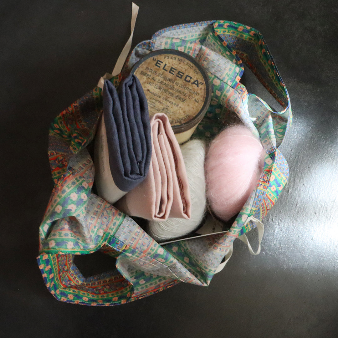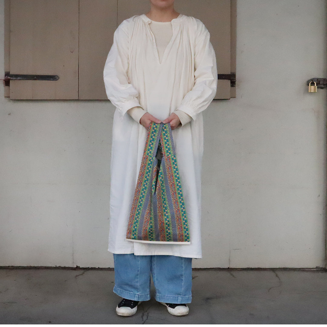 生地幅をそのまま使ってでつくることができるグローサリーバッグのキット。