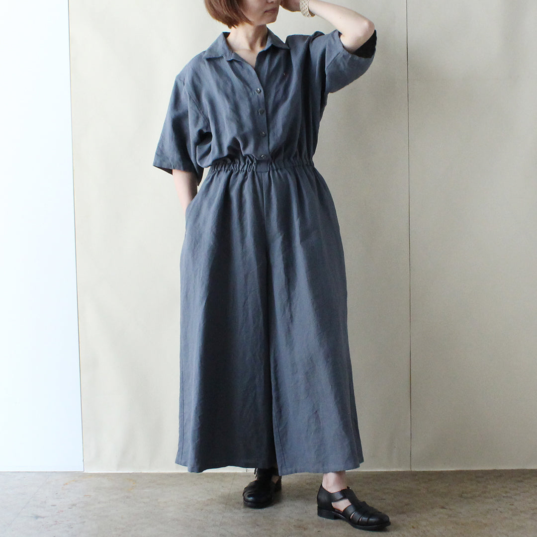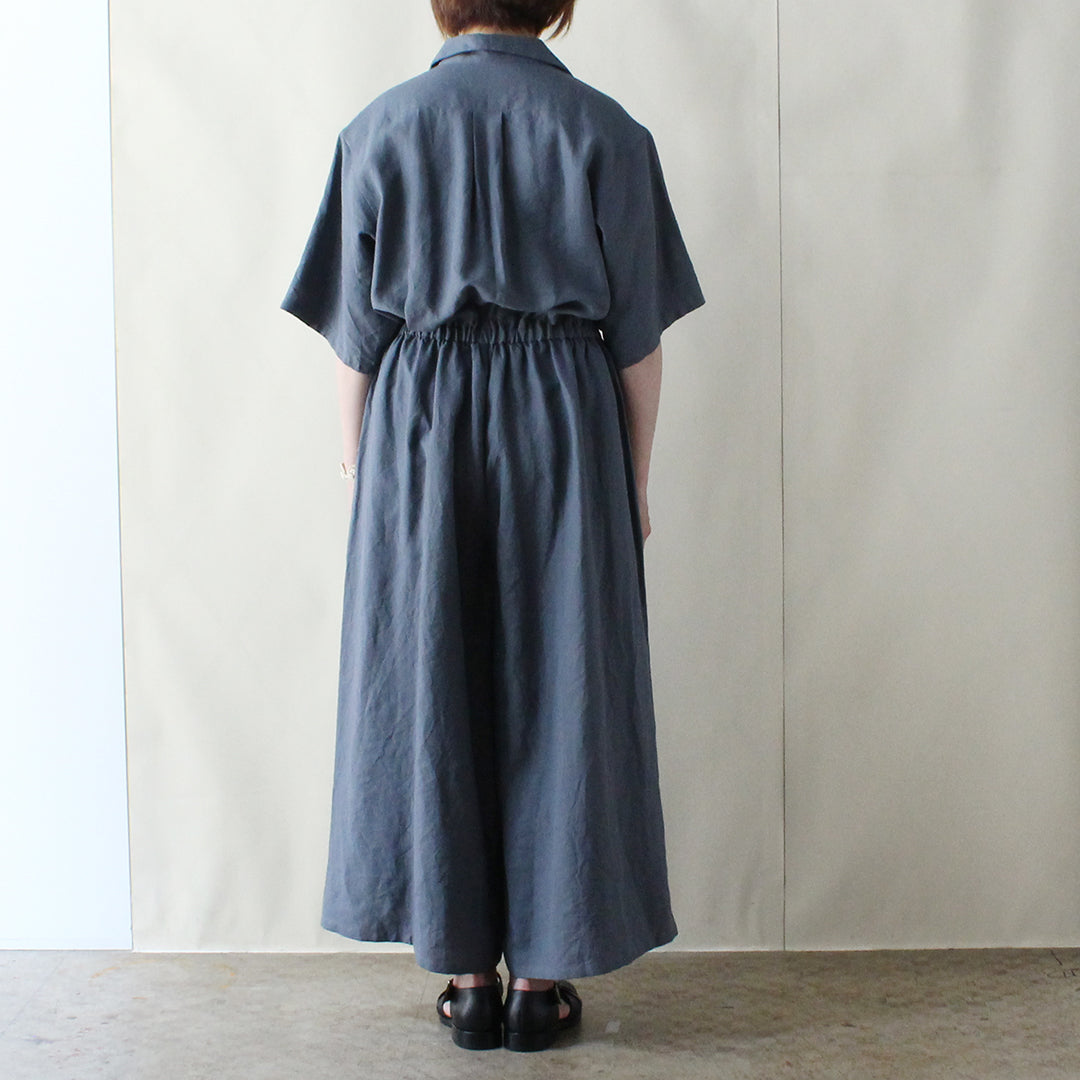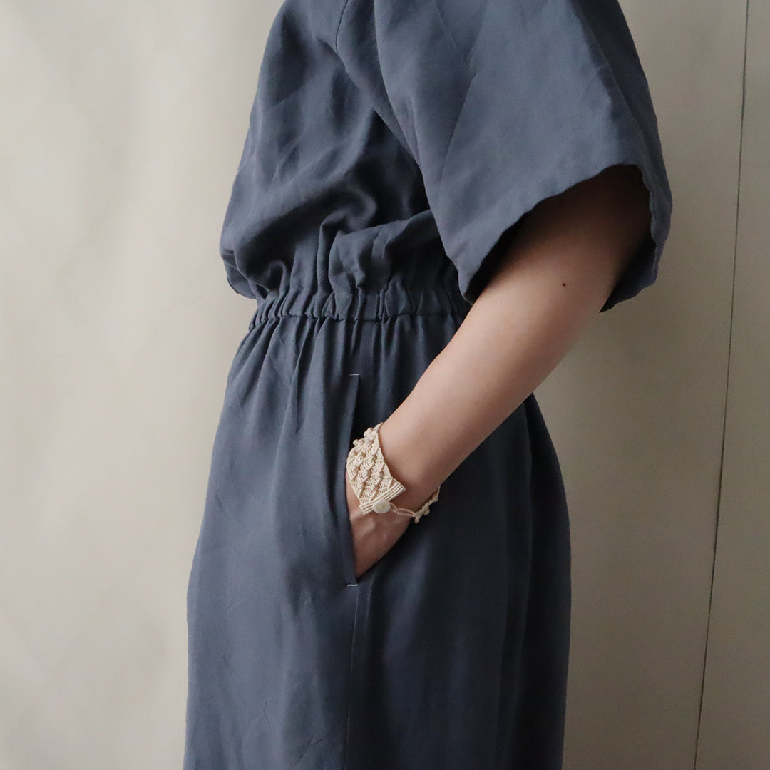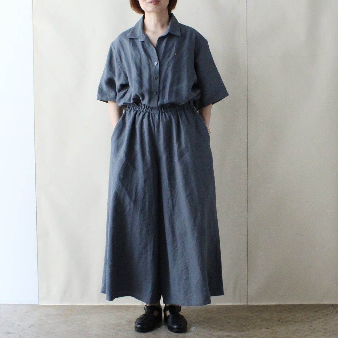 リネンのワンピースが夏の定番であるように、コンビネゾンも余分な要素をできるだけ省き、控えめで気軽に着られるデザインを目指して試作を重ね、完成しました。