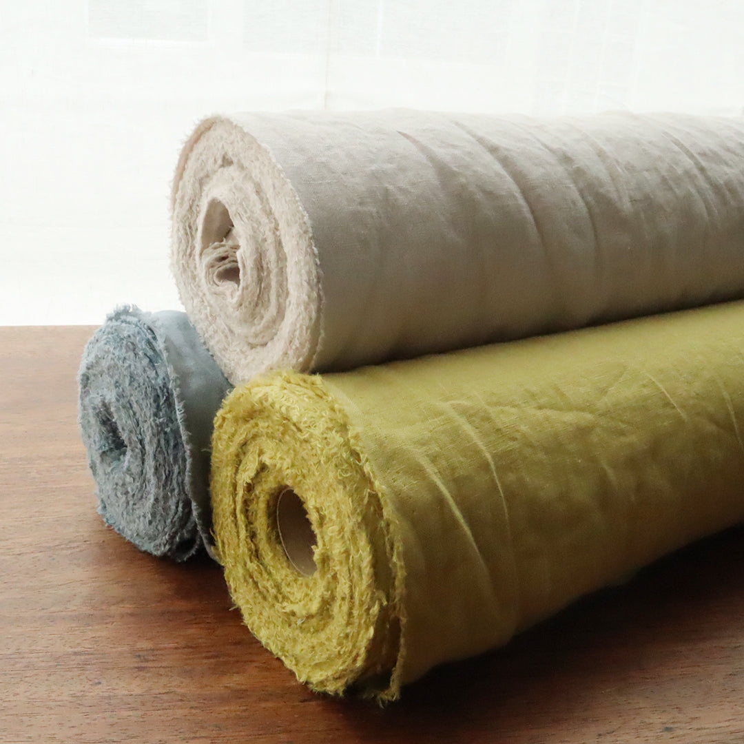 ソフトでふっくらとした洗いざらし風合いの平織りリネン生地。