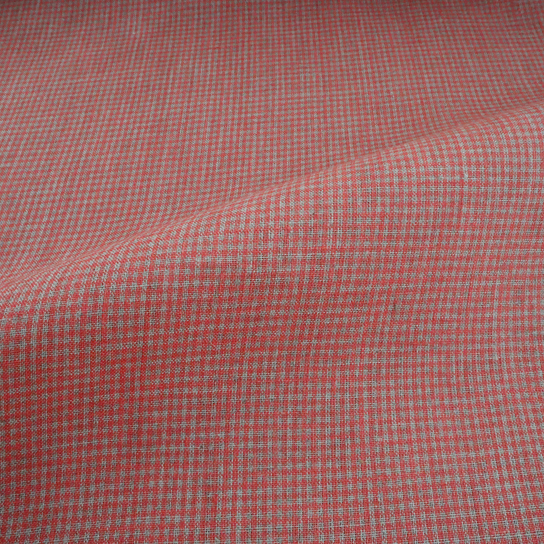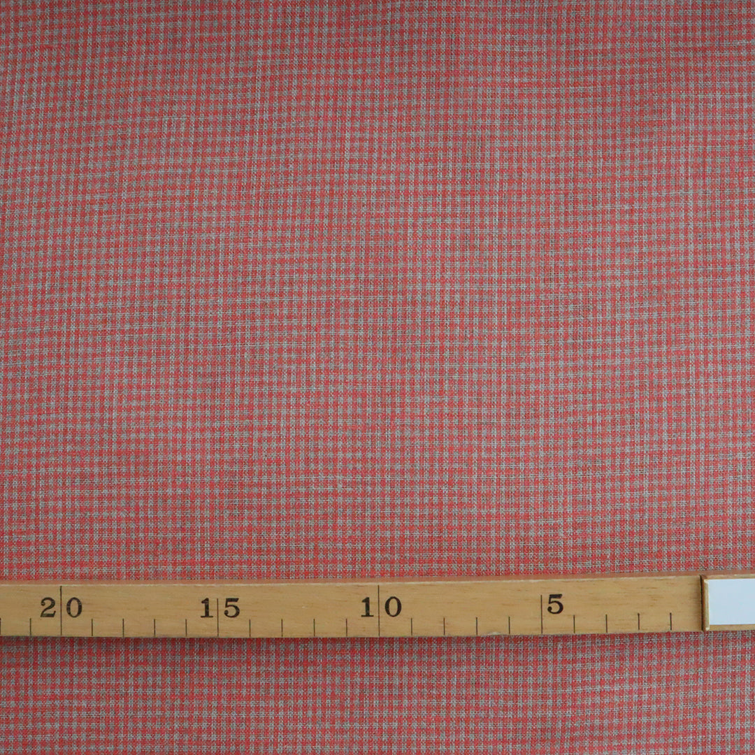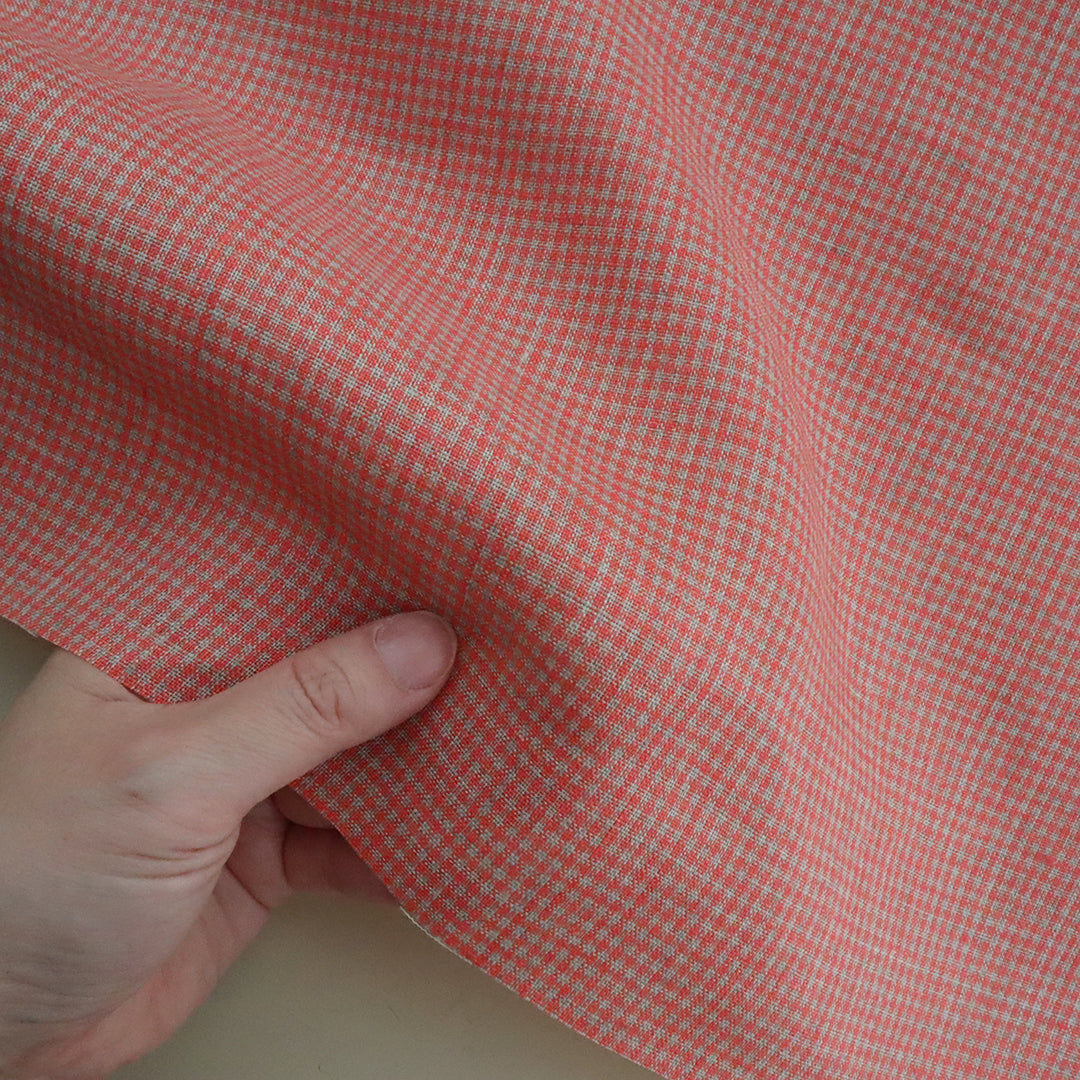 細かなギンガムチェックがかわいらしいリネン生地。ローズとベージュのやさしい色合いが、どこか懐かしく、あたたかな印象です。