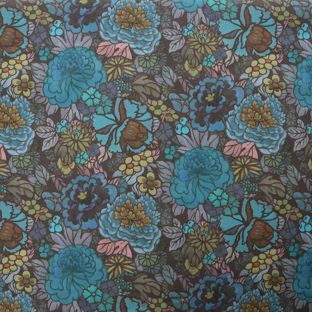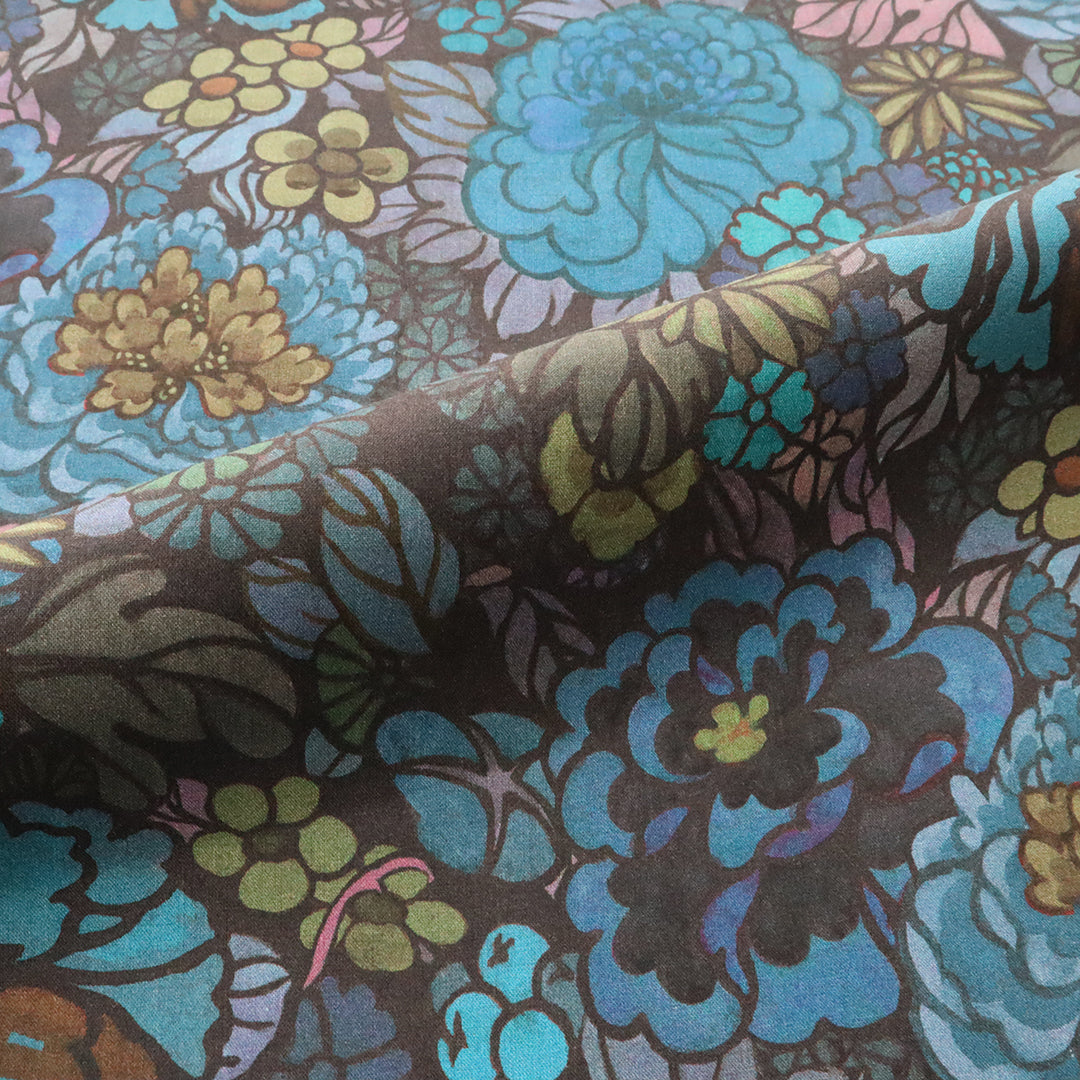 1990年代初頭、リバティは東京に日本支社とデザインスタジオを設立するという重要なマイルストーンを達成し、これまでのリバティの歴史と深いつながりを築きました。この永続的なつながりを記念して、アジアにインスパイアされた装飾芸術とデザインへの長年の憧れからアーカイブから作品が選ばれました。深みのある漆黒の色彩で豊かに表現された「ヘリテージ・ガーデン」には、美しく様式化された菊や牡丹、そしてもちろん日本の花々の中に隠れた果実が描かれています。