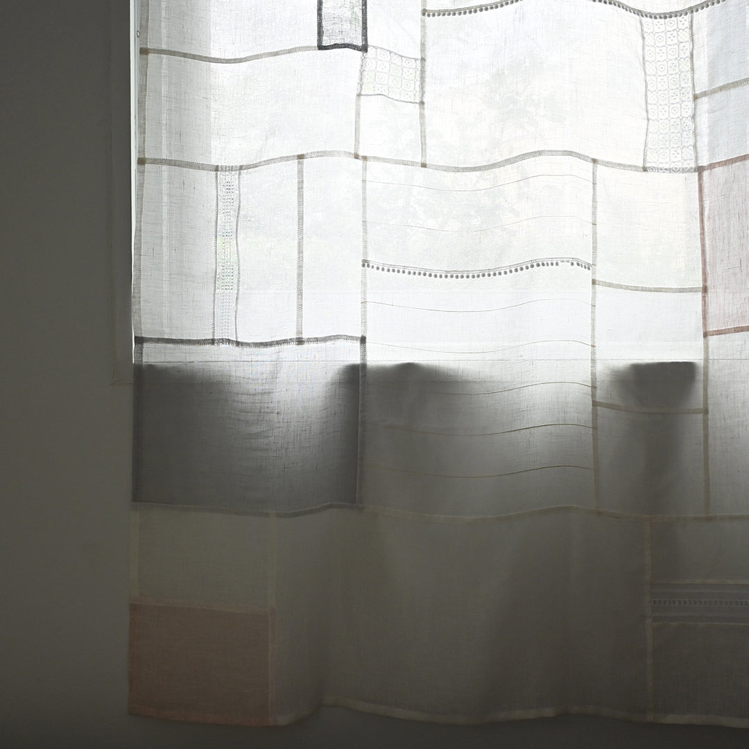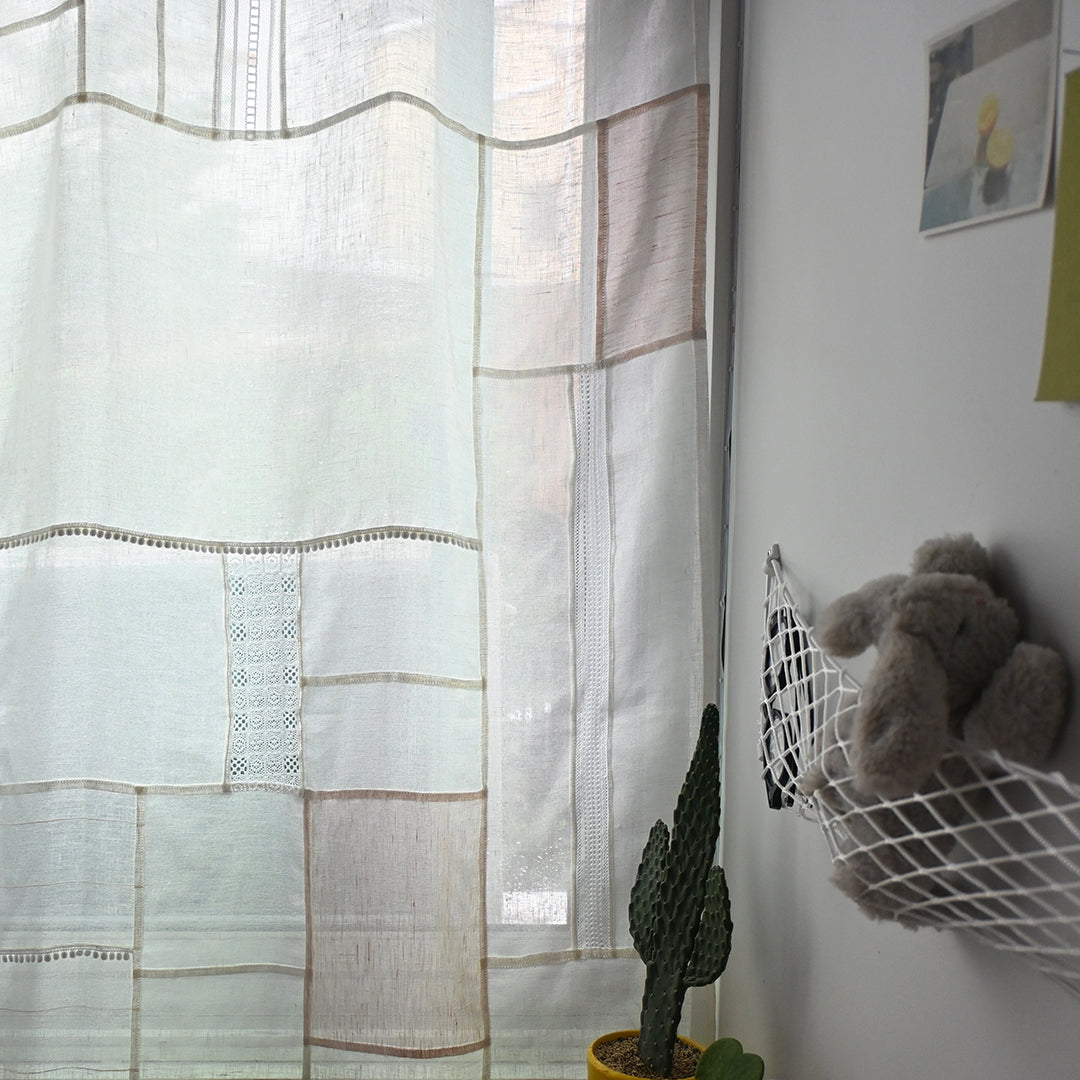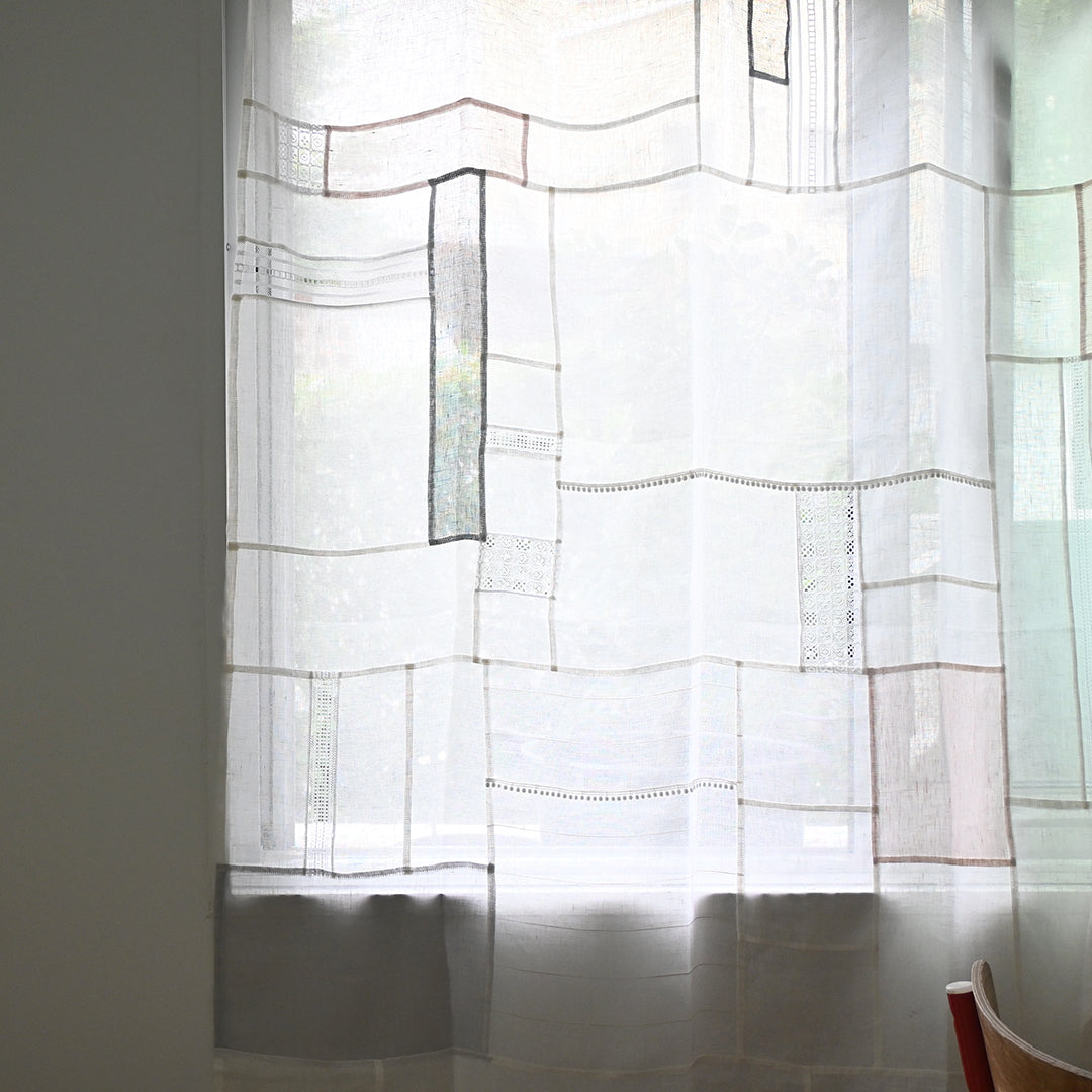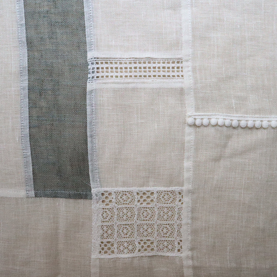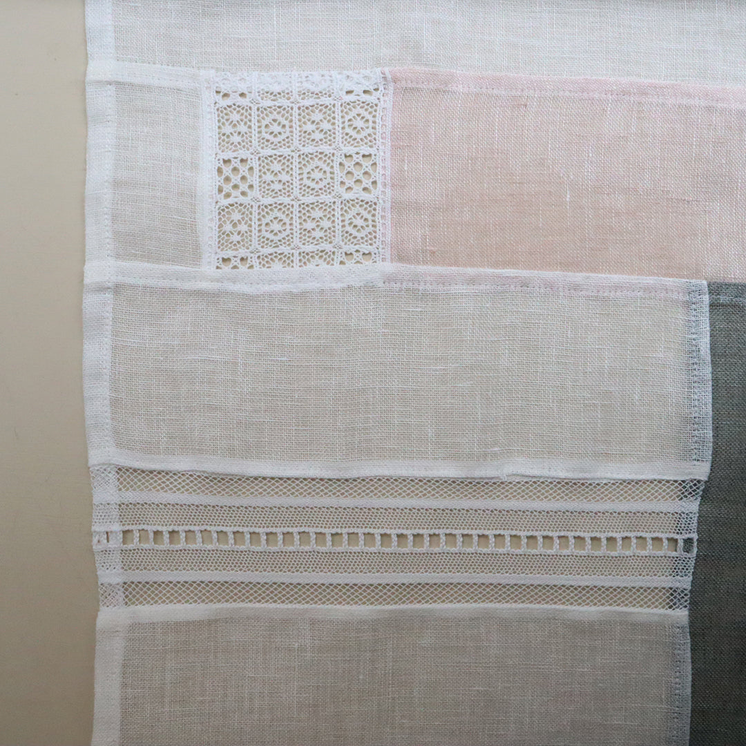光を通す薄手のリネンとレースをつないでつくるパッチワーククロスの材料セット。