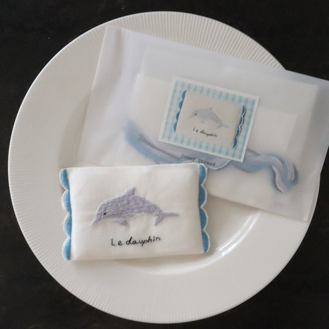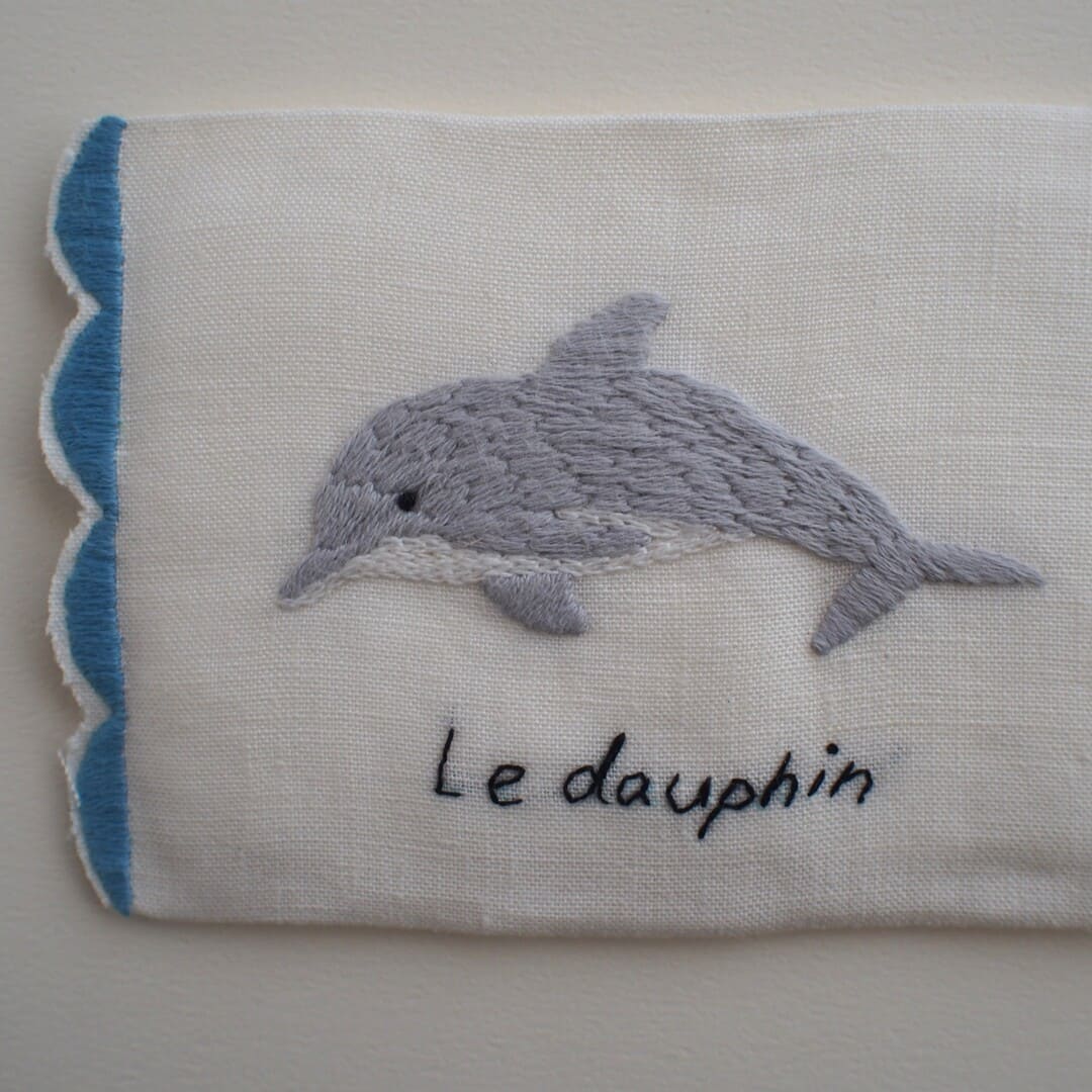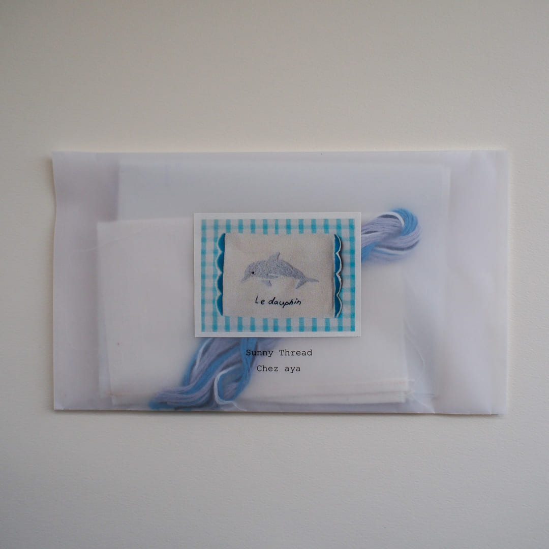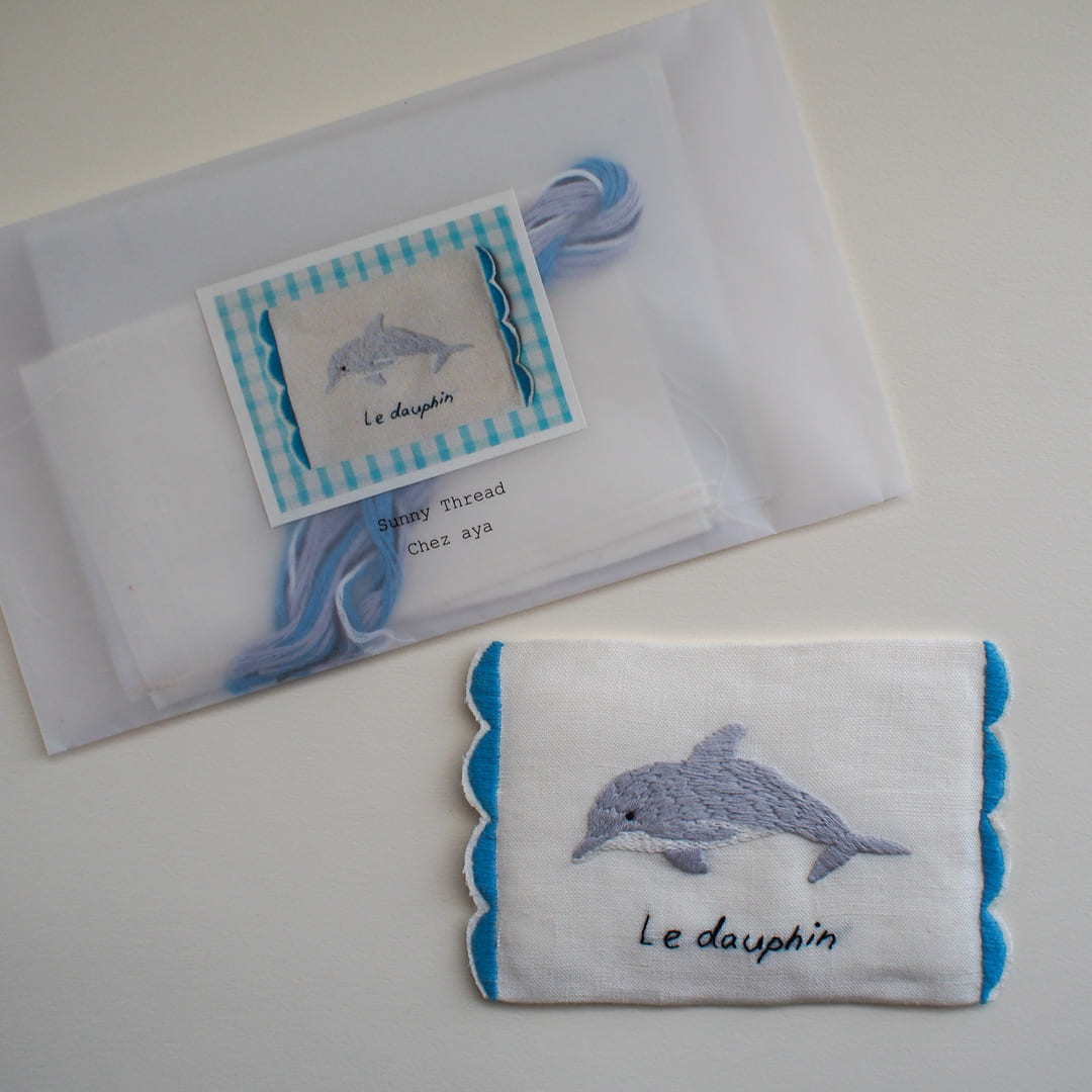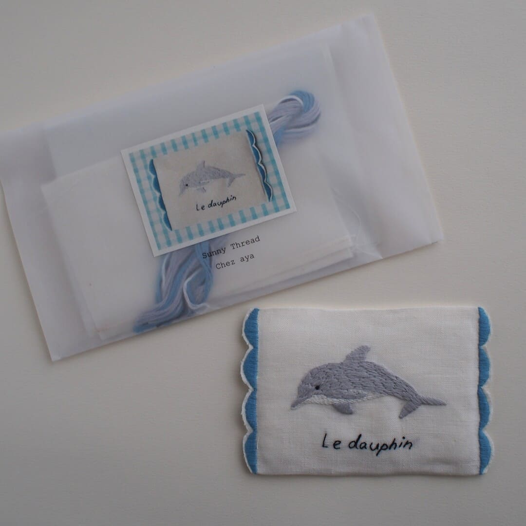 愛らしいイルカをSunny Threadで描く刺繍キット。イルカのモデルはayaさんの暮らす熊本の海を自由に泳ぐミナミハンドウイルカです。