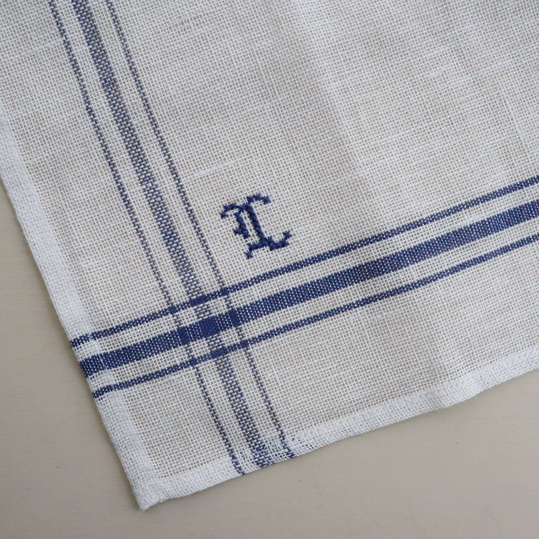 ベルギーLIBECO社のキッチンクロス「コンフィチュールミニ」にクロスステッチ針と刺しゅう糸、アルファベットの図案をセットにしました。