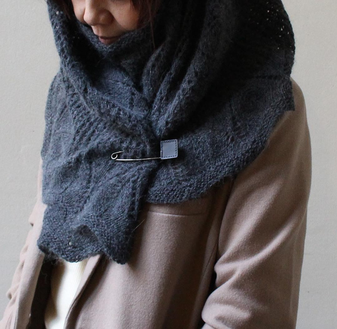 手編みのショールやストールなどのまきものや、ボタンのないタイプのニットジャケットなどを「ちょっと留めたい」ときにぴったり。着心地や使い心地がぐっとよくなります。