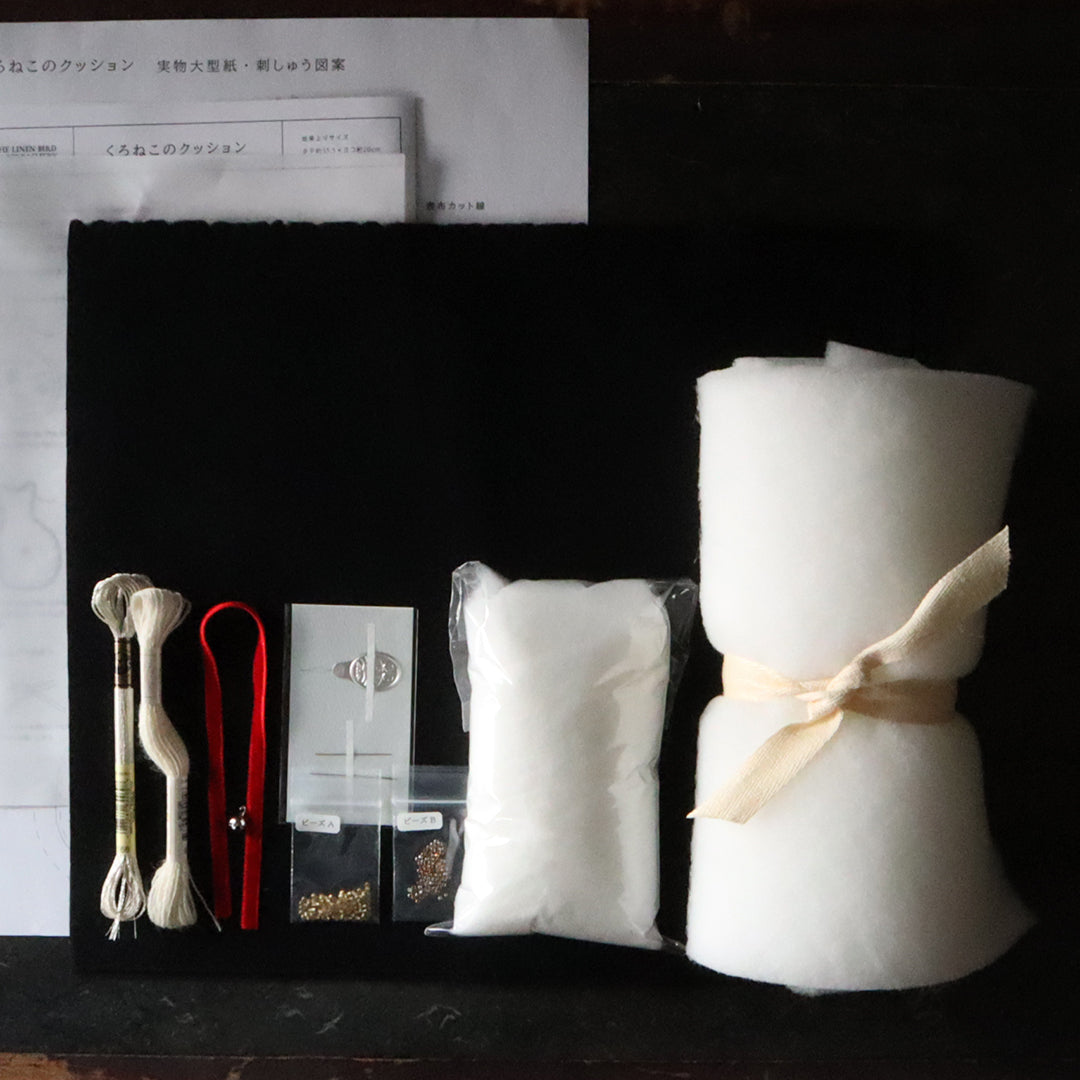 冬と夜のイメージから生まれた、リネンバードオリジナルのくろねこクッションキット。