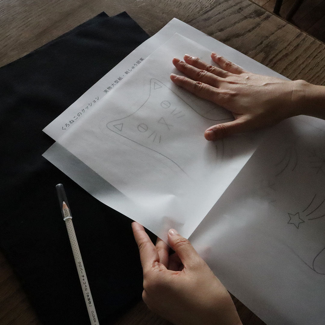 ウール地は、普段の刺繍でよく使うリネンとは少し違った素材。チャコペーパーでは図案が書きにくいため、トレーシングペーパーを使って図案を写していきます。