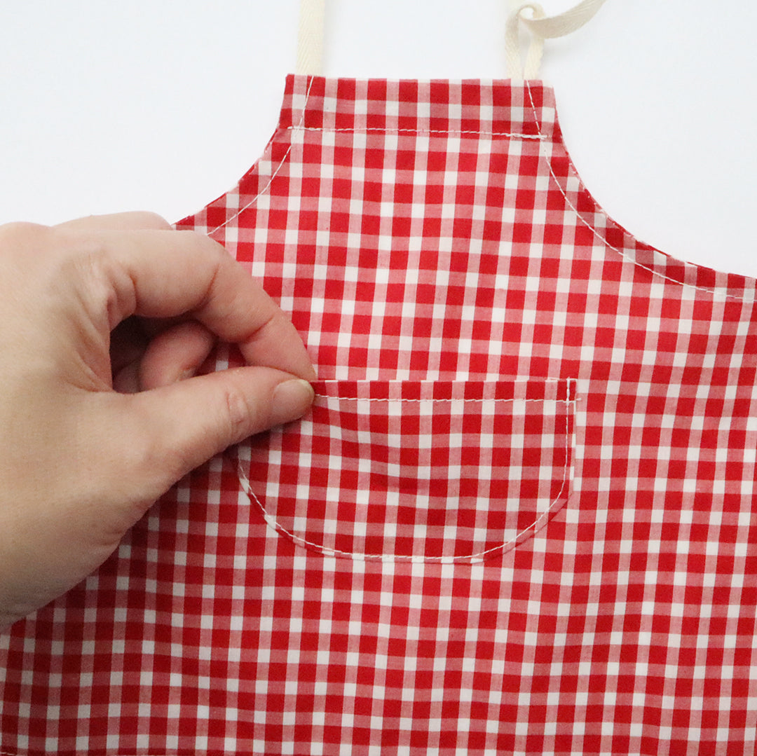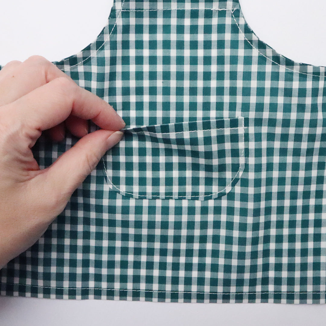 ブラックシャンブレーにはグリーンのエプロンがセットになっています -