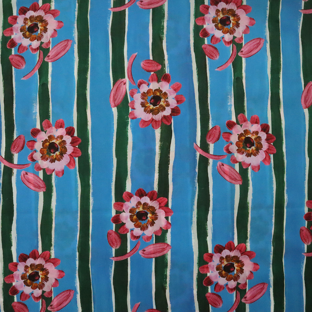 力強く表現豊かなブラシストロークで描かれた「ボウ」は、摂政時代に流行したストライプや花柄のスタイルへの現代的なアプローチです。装飾的なサテンや刺繍に見られるように、このデザインはその魅力に対する細やかな探求を現代的な視点で表現しています。