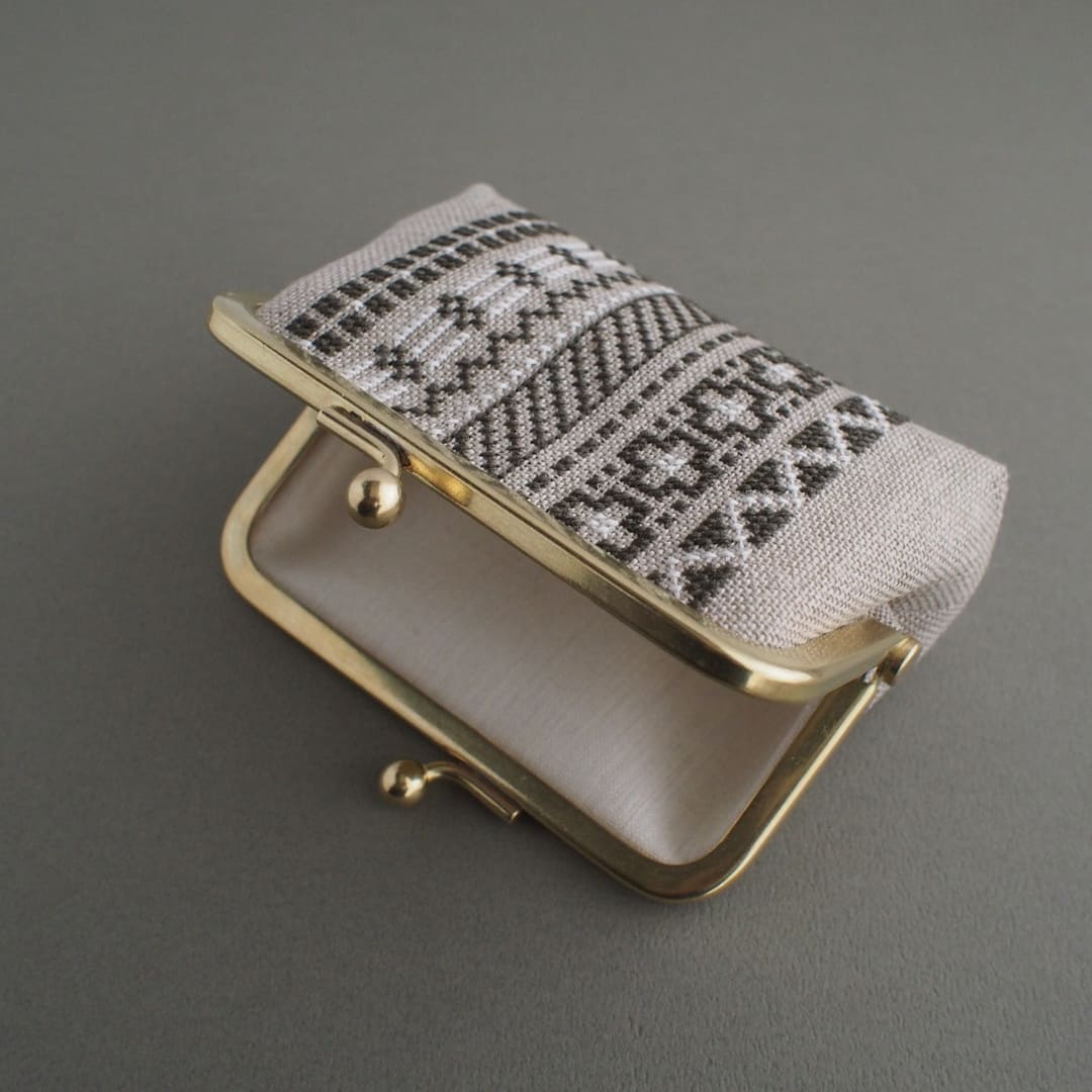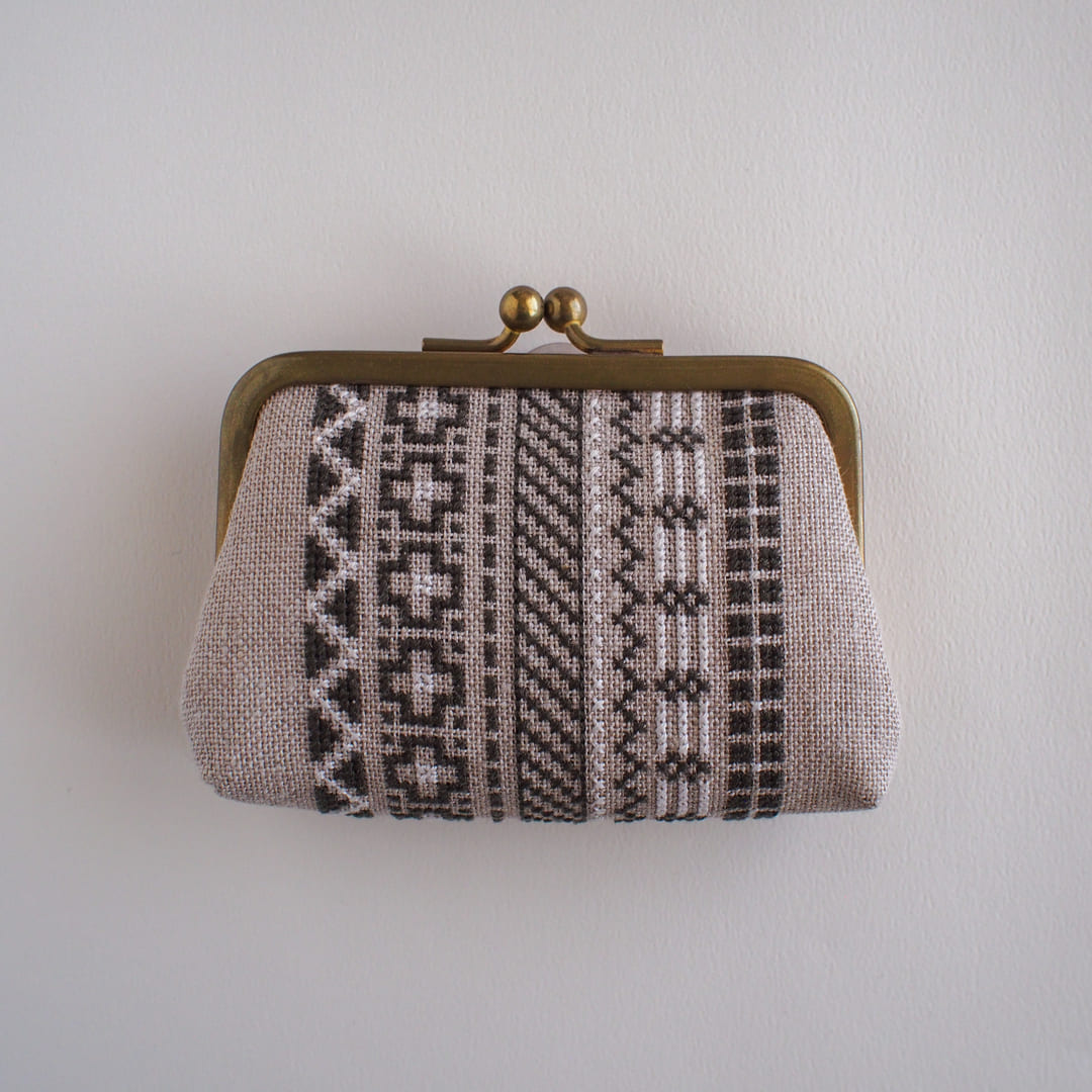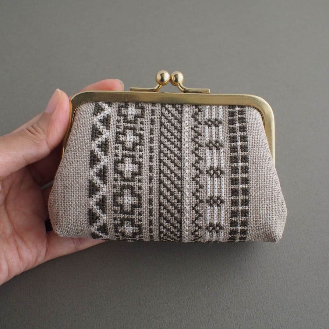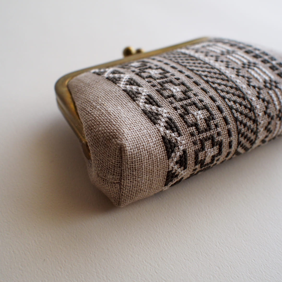 リネンにクロスステッチを施してつくる、がま口ポーチキット。