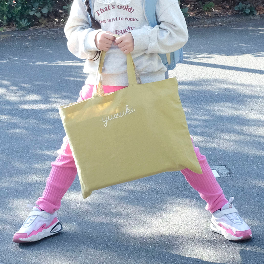 ▲トートバッグ ヨコ型 なまえ刺繍C お道具箱もすっぽりと入ります