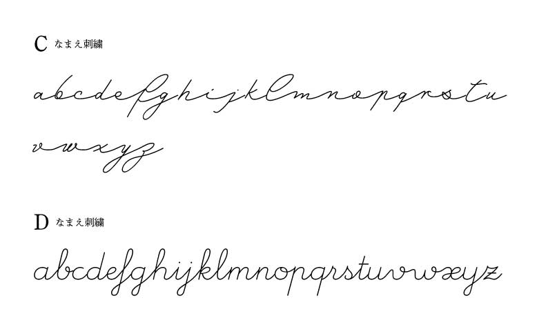 ミシン刺繍のよいところは“色褪せず、丈夫で長持ち”というところ。機械的すぎない、やわらかさをもつフォントをご用意しました。