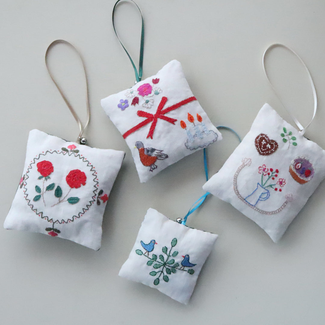 刺繍作家、村田かつ子さんの綿の入ったふっくらとしたオーナメント。