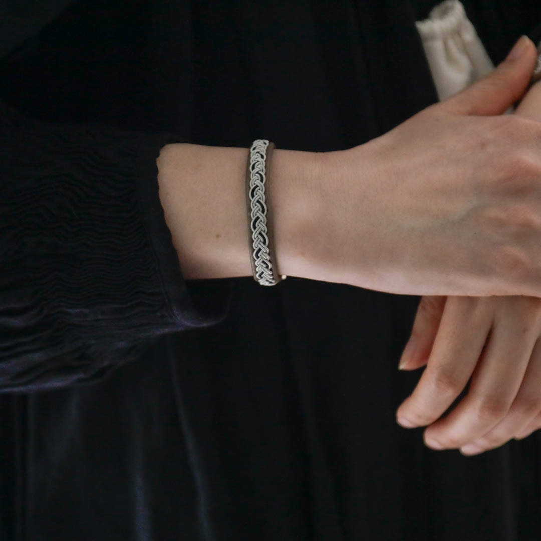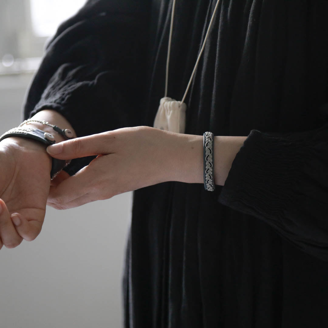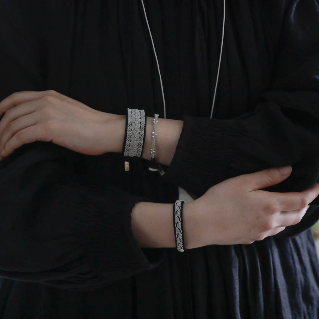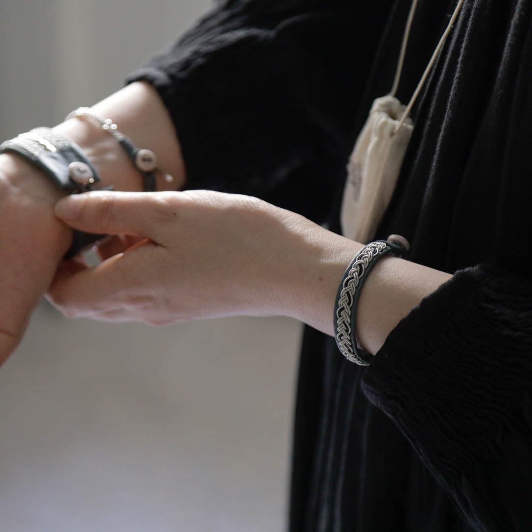 北欧の先住民サーミ族による伝統を取り入れた、YOHEI NOGUCHIのサーミブレスレットをご紹介します。こちらでご紹介するのはシルバーとブラックの糸を使った三つ編みのデザイン。