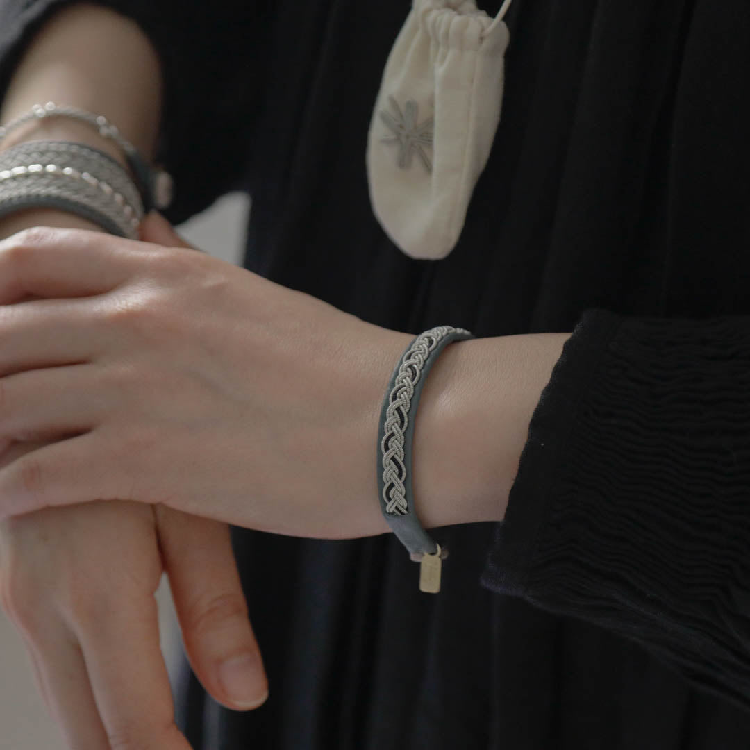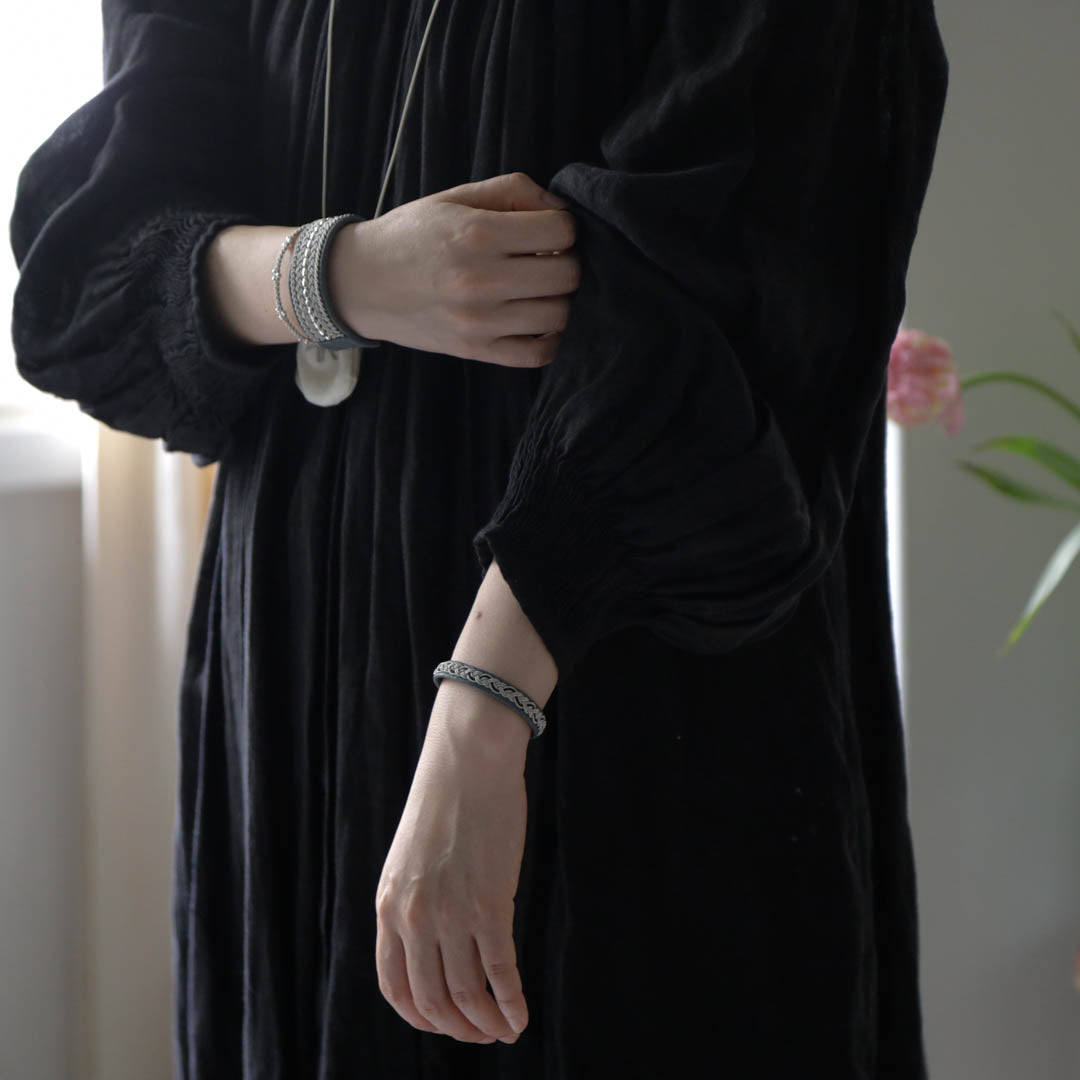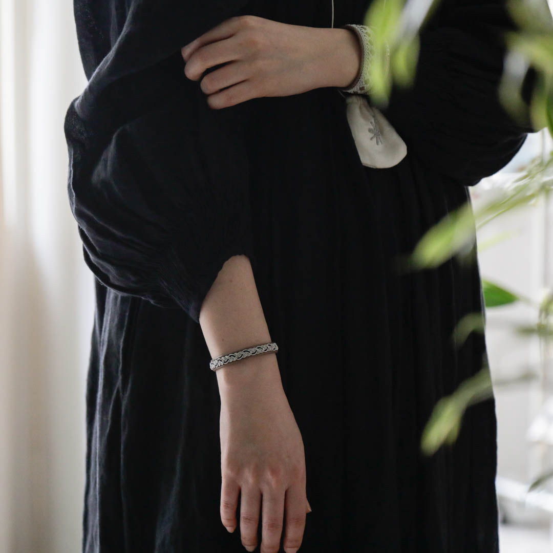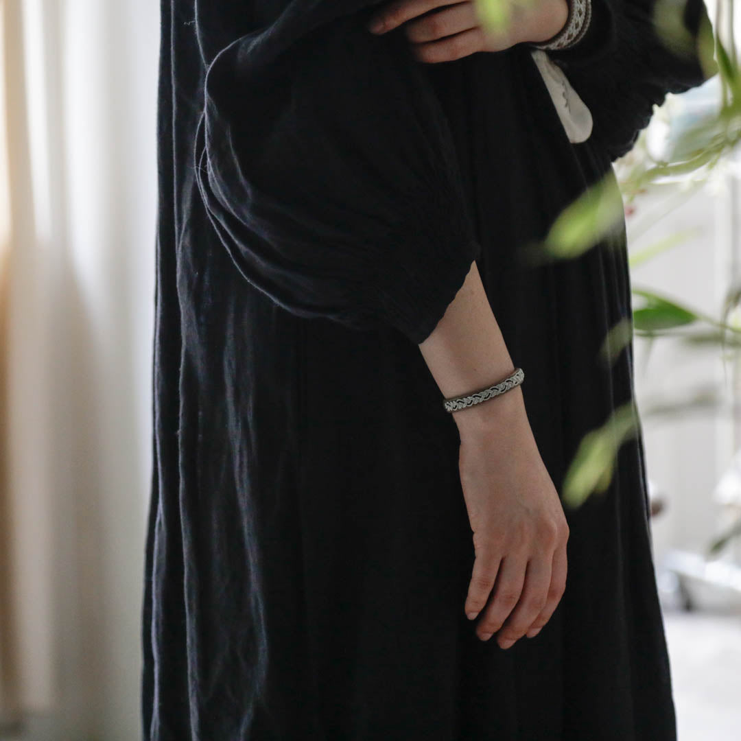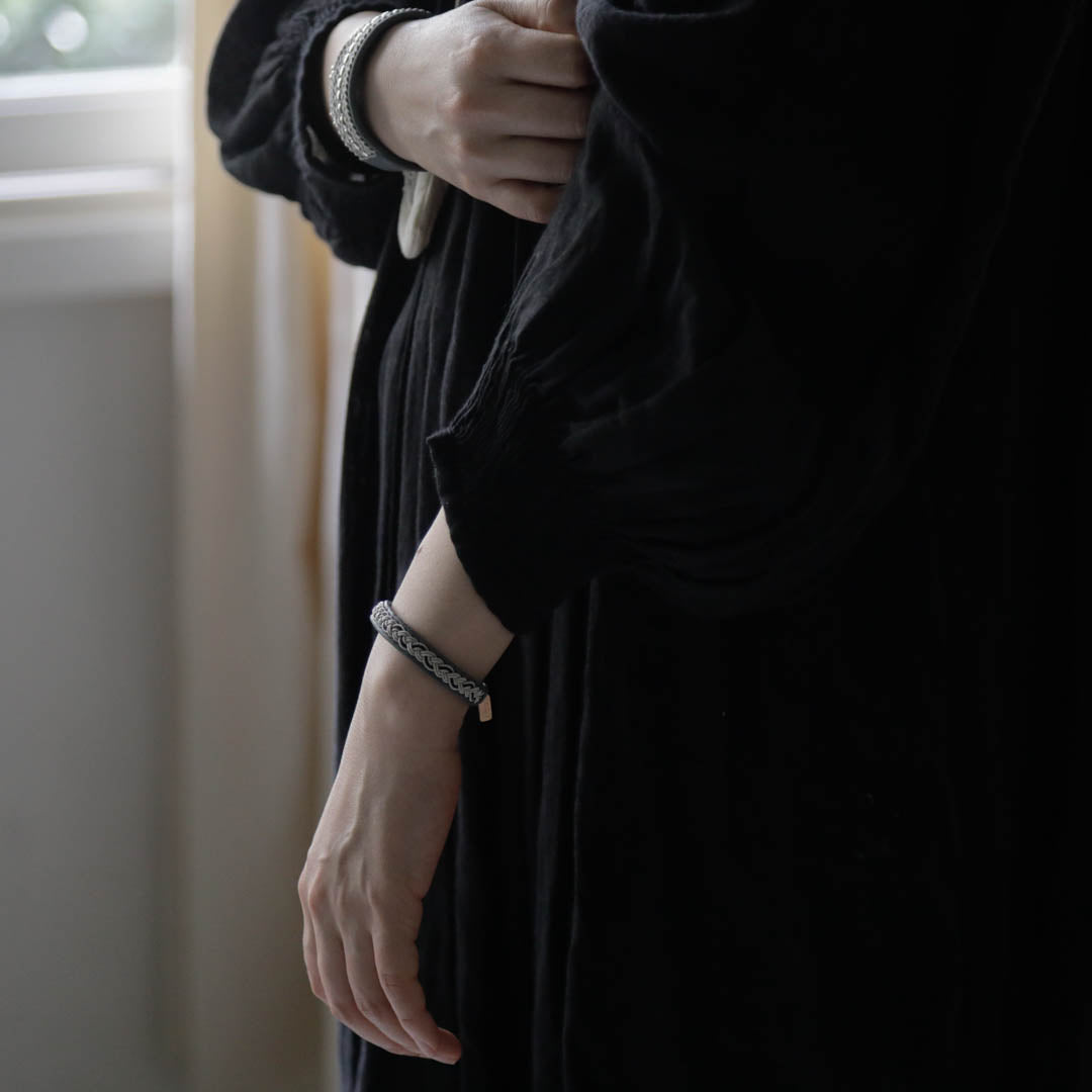 北欧の先住民サーミ族による伝統を取り入れた、YOHEI NOGUCHIのサーミブレスレットをご紹介します。こちらでご紹介するのはシルバーとブラックの糸を使った三つ編みのデザイン。