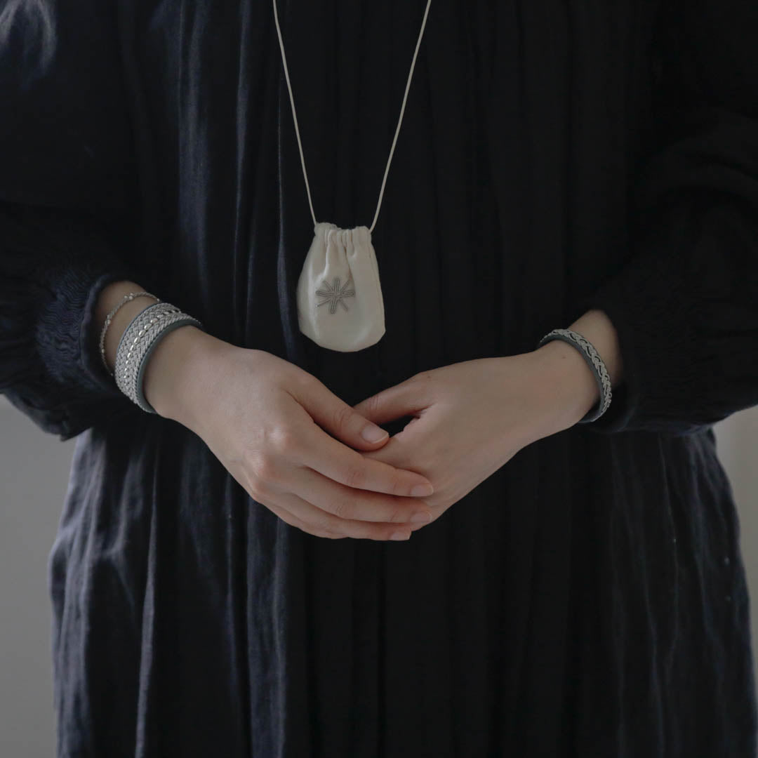 その伝統を取り入れつつ、あえてゆるく編むことでレースのような繊細さを表現。トライバルモードになりすぎず、普段の装いになじみます。