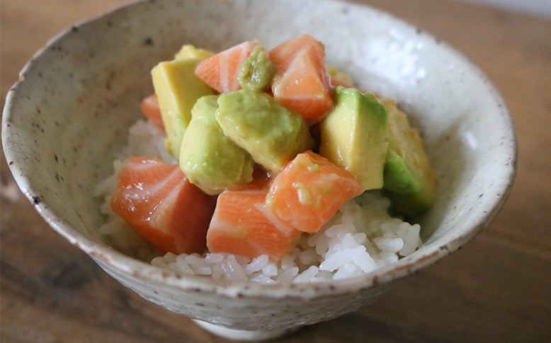 ▲丸正酢醸造元のおすすめ、サーモンとアボカドをちゃんぽんずとわさびで和えた丼ぶり。柑橘の香りであっさりするので、丼ぶり1杯あっという間に食べられます