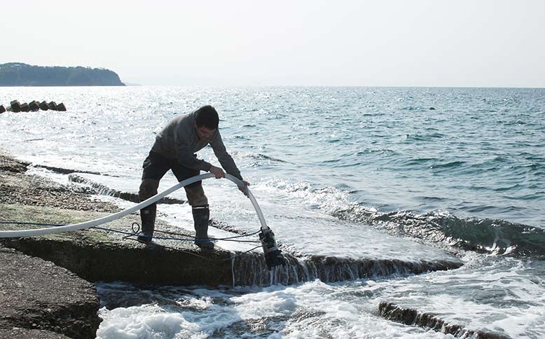 ▲汲み上げられた海水は、1日かけてろ過されます 写真提供:脱サラファクトリー