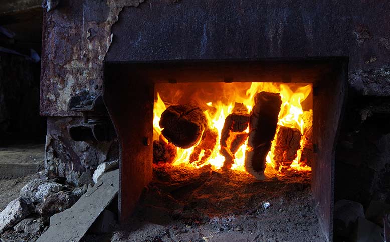▲燃料は、ガスではなく火のあたりがやわらかい薪を使っています