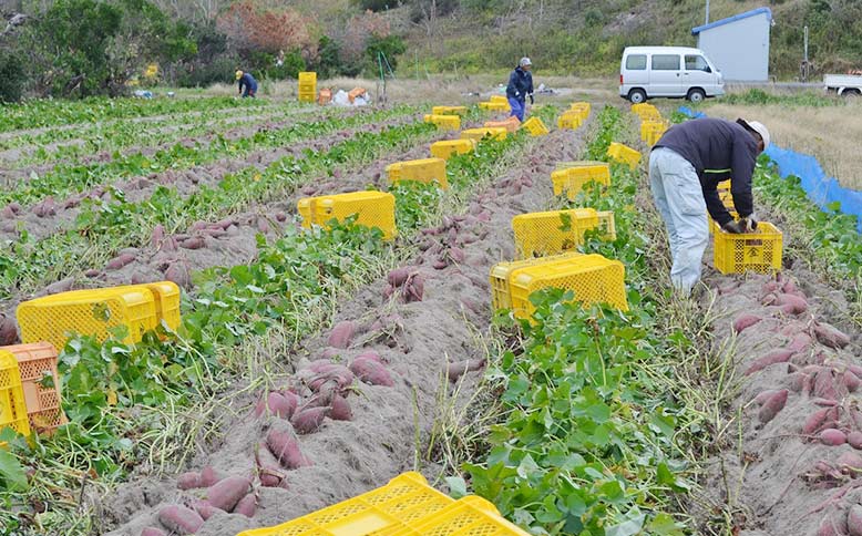 福田商店の干し芋づくりは、さつまいもの栽培から。畑でどれだけ手間をかけたかで干し芋の味が変わると同店の福田社長は考えます。
