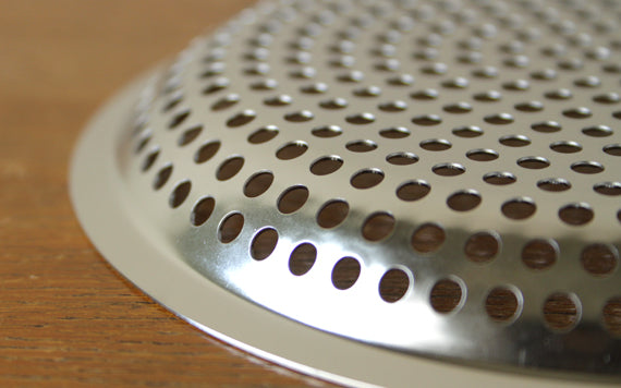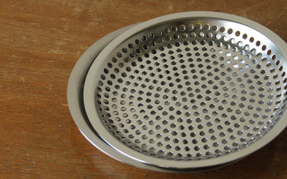 一般的なステンレスのザルは強度を出すため縁を巻いたつくりになっていますが、この「まかないシリーズ」は「巻かない」で縁の強度を出し、縁を巻かない分、端を丁寧に研磨してなめらかに仕上げています。