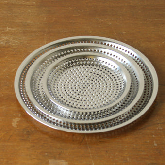 金属加工が盛んな新潟燕市でつくられたステンレスのまかないシリーズ。手馴染がよくすっきりとシャープなデザインで、そのまま食卓へ出しても違和感がありません。なかなか見ない浅いザルは省スペースでも頼れる存在です。