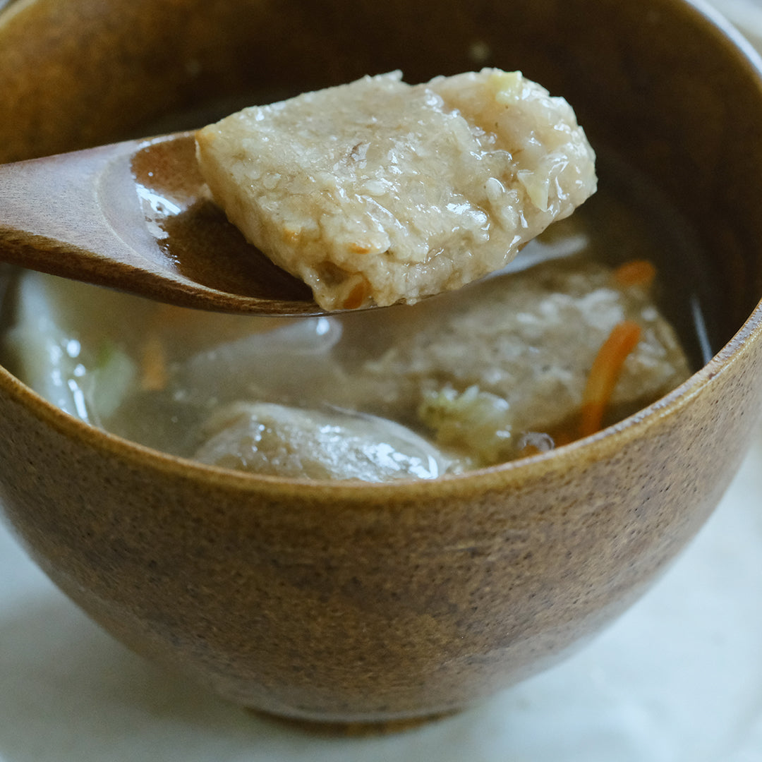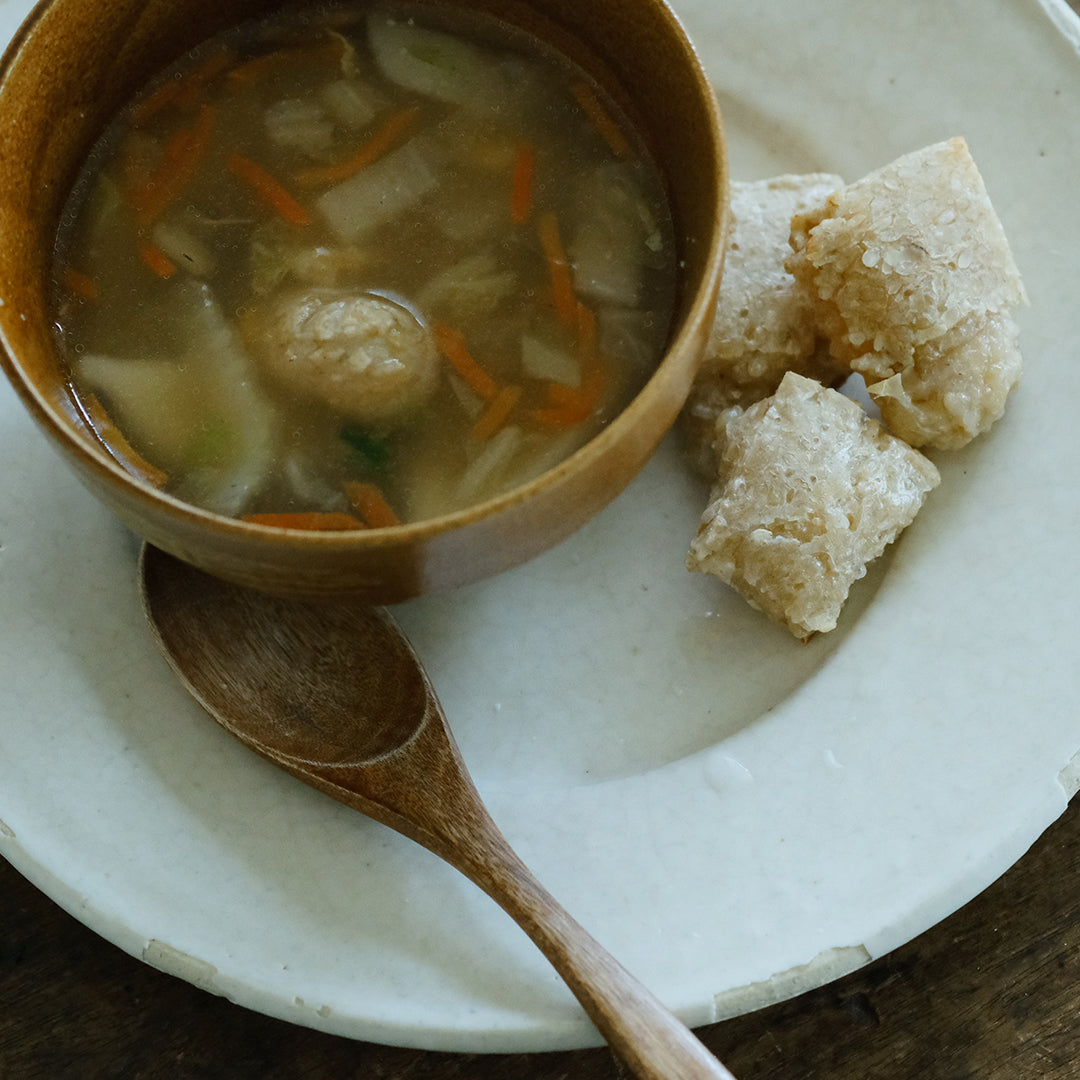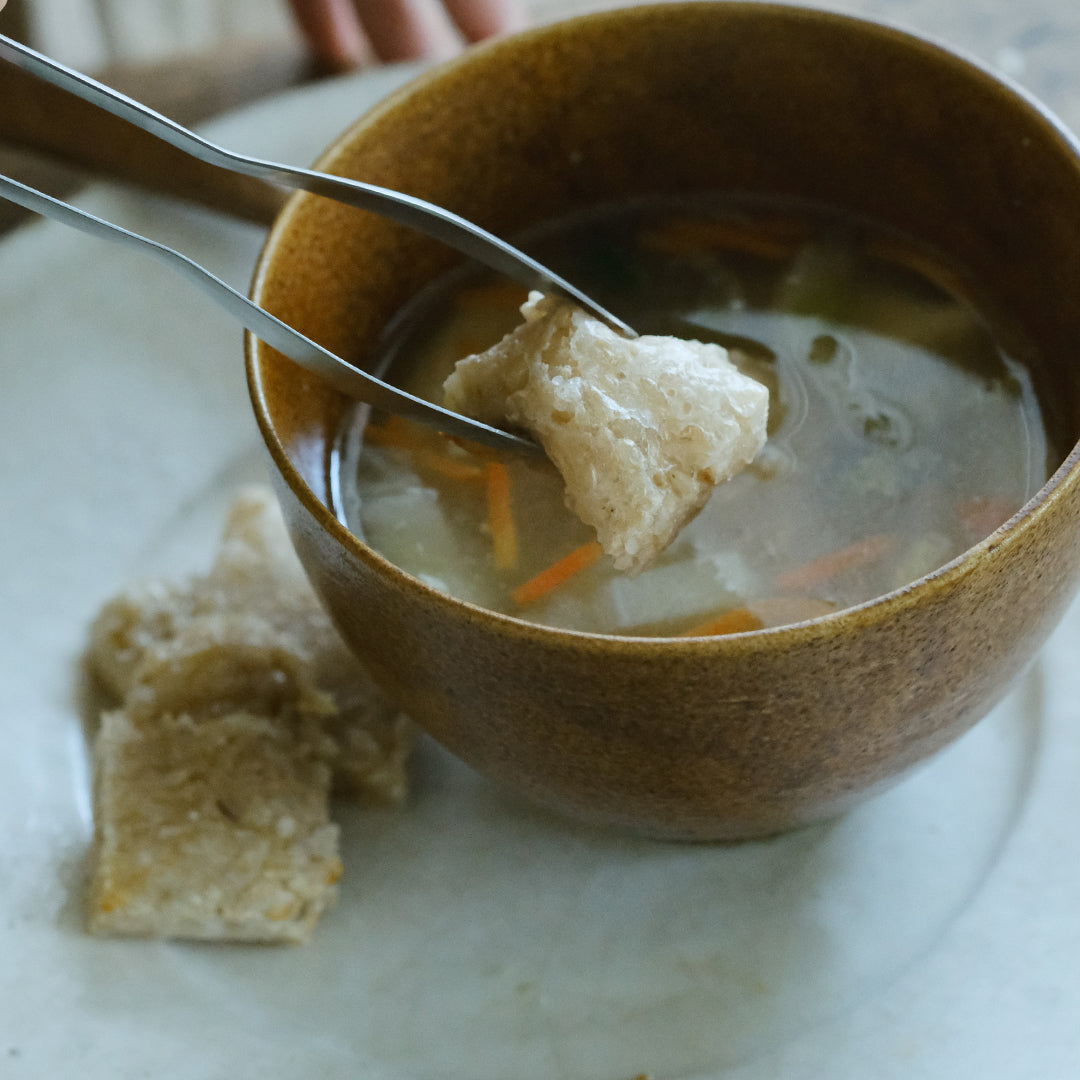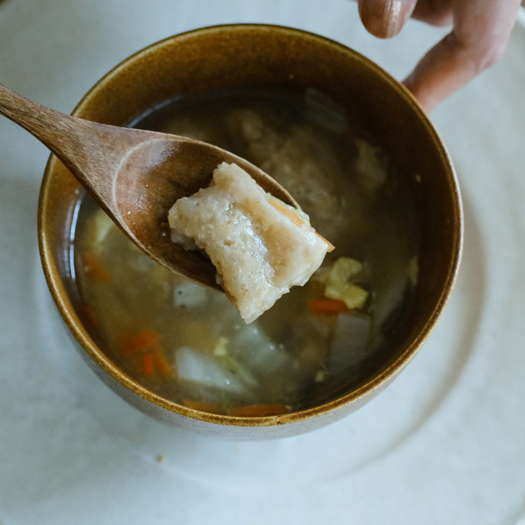 お雑煮やトックスープなど、汁物との相性もばっちりです。スープのうま味をお餅にたっぷりと絡めて。