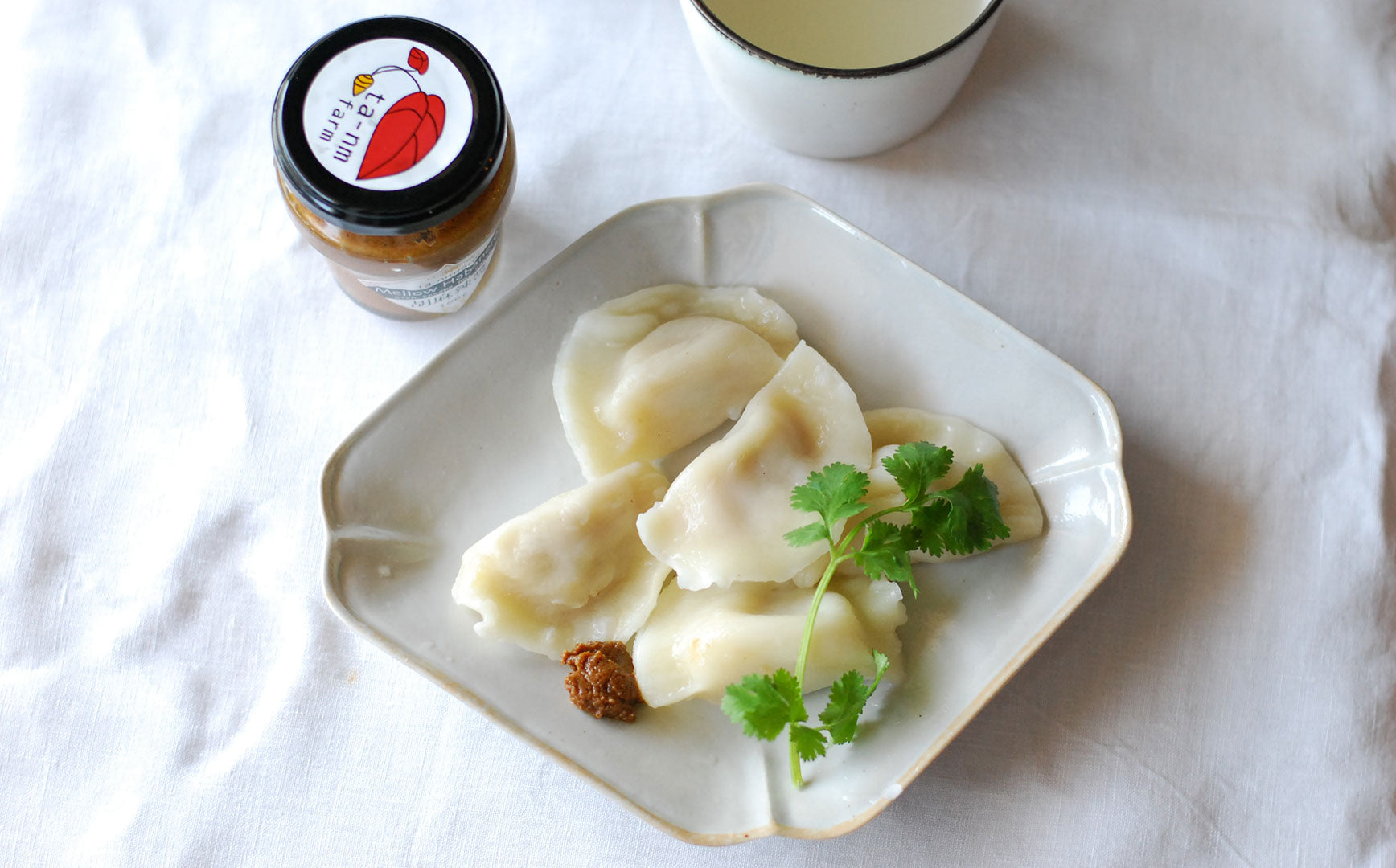 ターンムファームおすすめの胡麻辣醤の使い方は、皮から手づくりした水餃子だそう。そのほかにも焼肉や蒸し鶏、豚しゃぶ、冷奴、温野菜などのほか、おにぎりの具にすると幸福感に包まれるおいしさが楽しめるそうです。