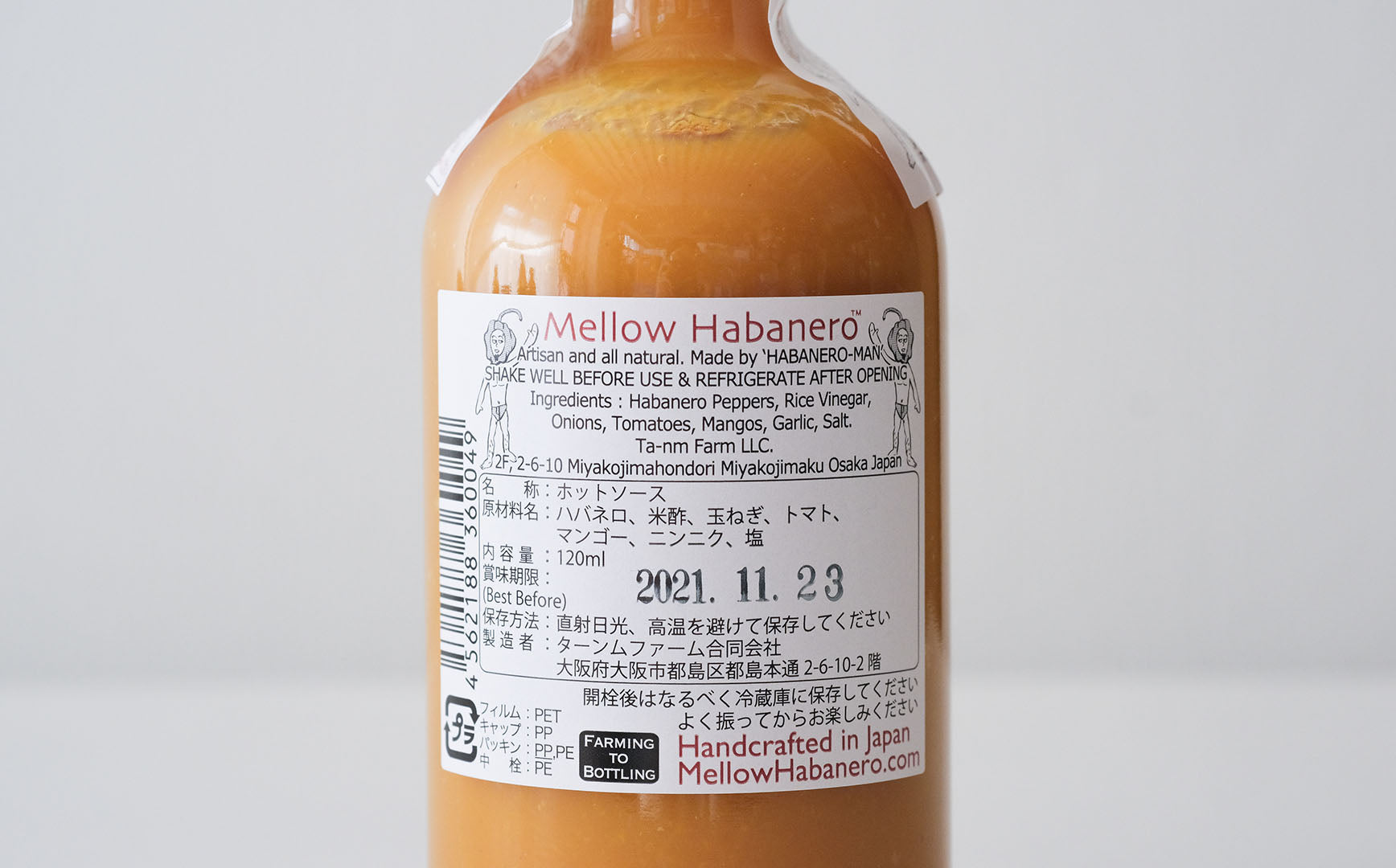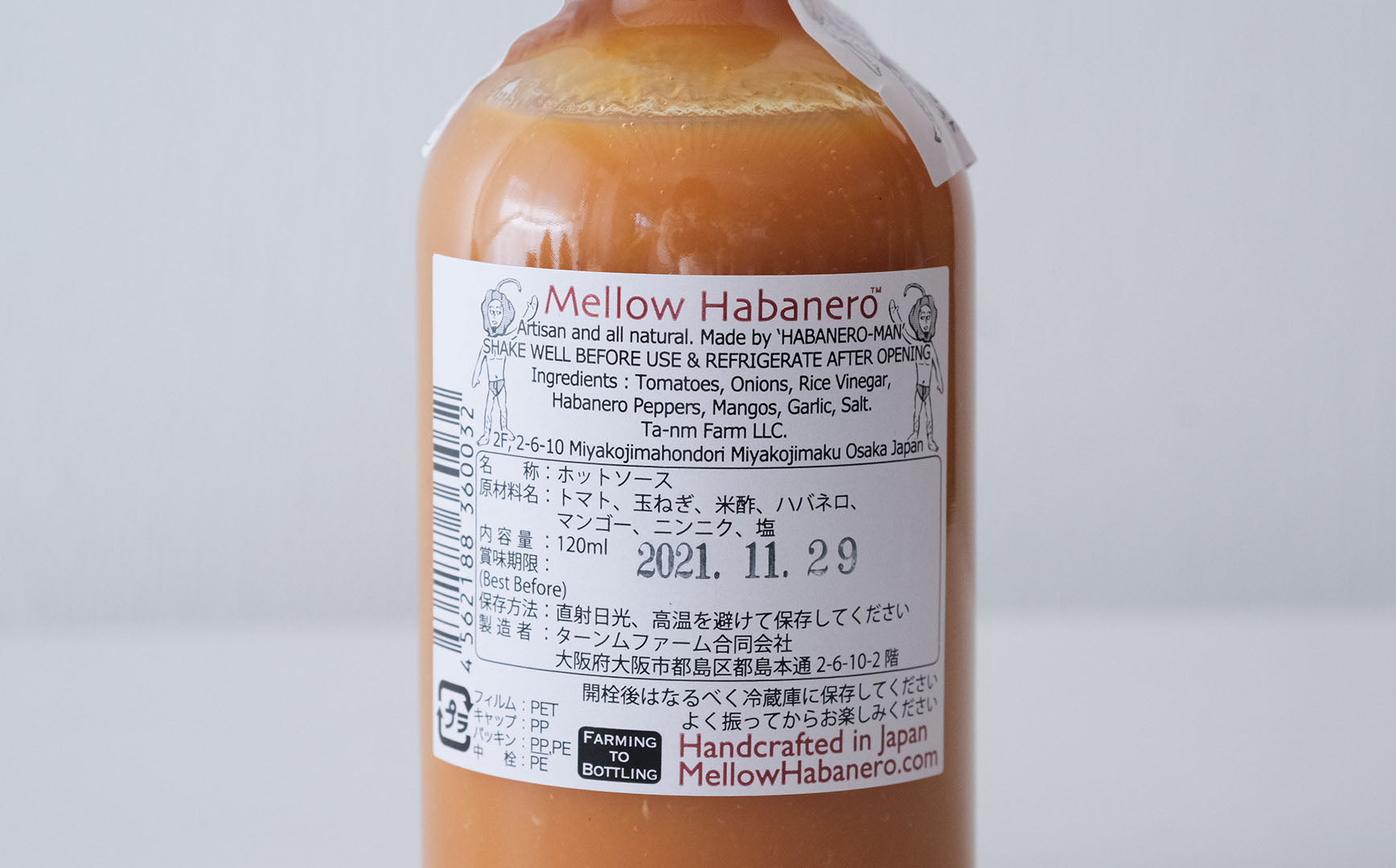 原材料名:マイルド/トマト、玉ねぎ、米酢、ハバネロ、マンゴー、ニンニク、塩エクストラ/ハバネロ、米酢、玉ねぎ、トマト、マンゴー、 ニンニク、塩