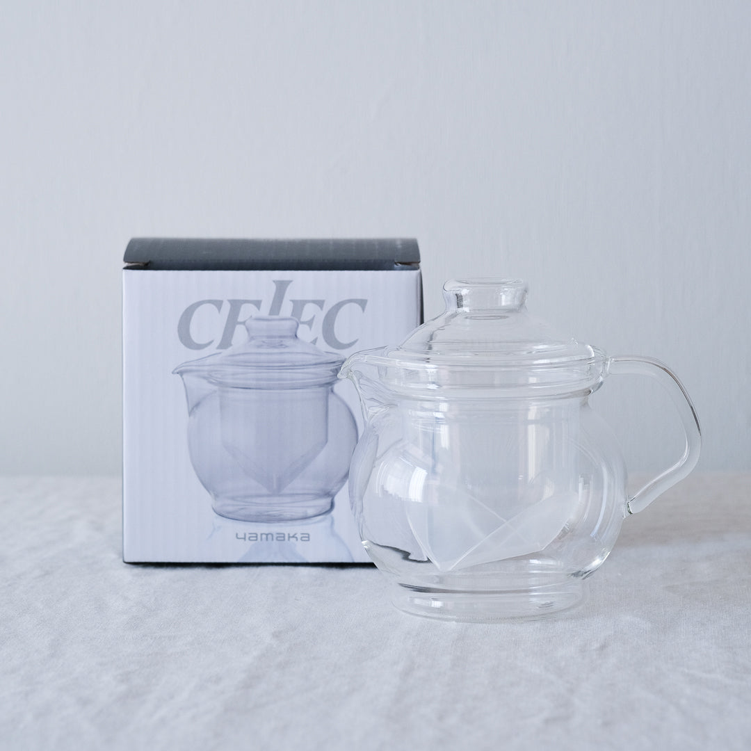 ハーブショップ「蓼科ハーバルノート・シンプルズ」が選んだ「celec」のガラスポット。2~3人分のお茶が淹れられます。
