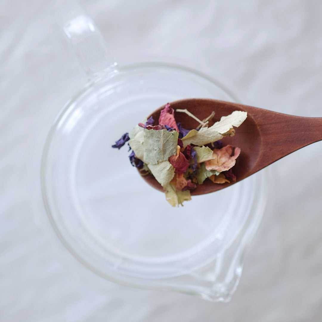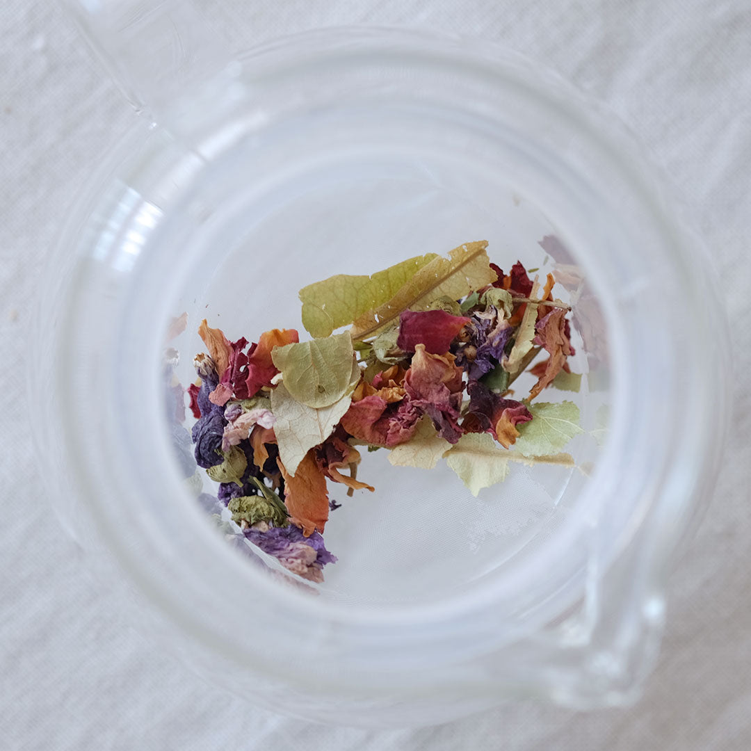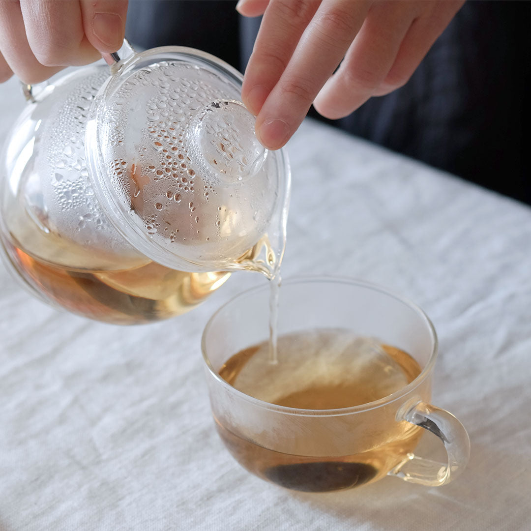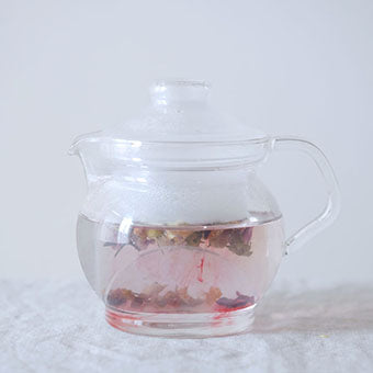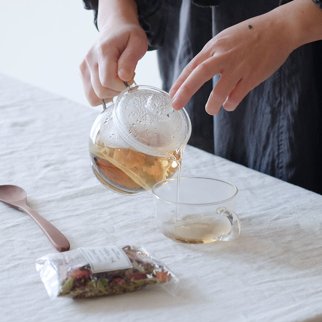 ガラス製なので浸出の様子がわかり、ハーブの茶葉と水色の美しさが楽しめます。
