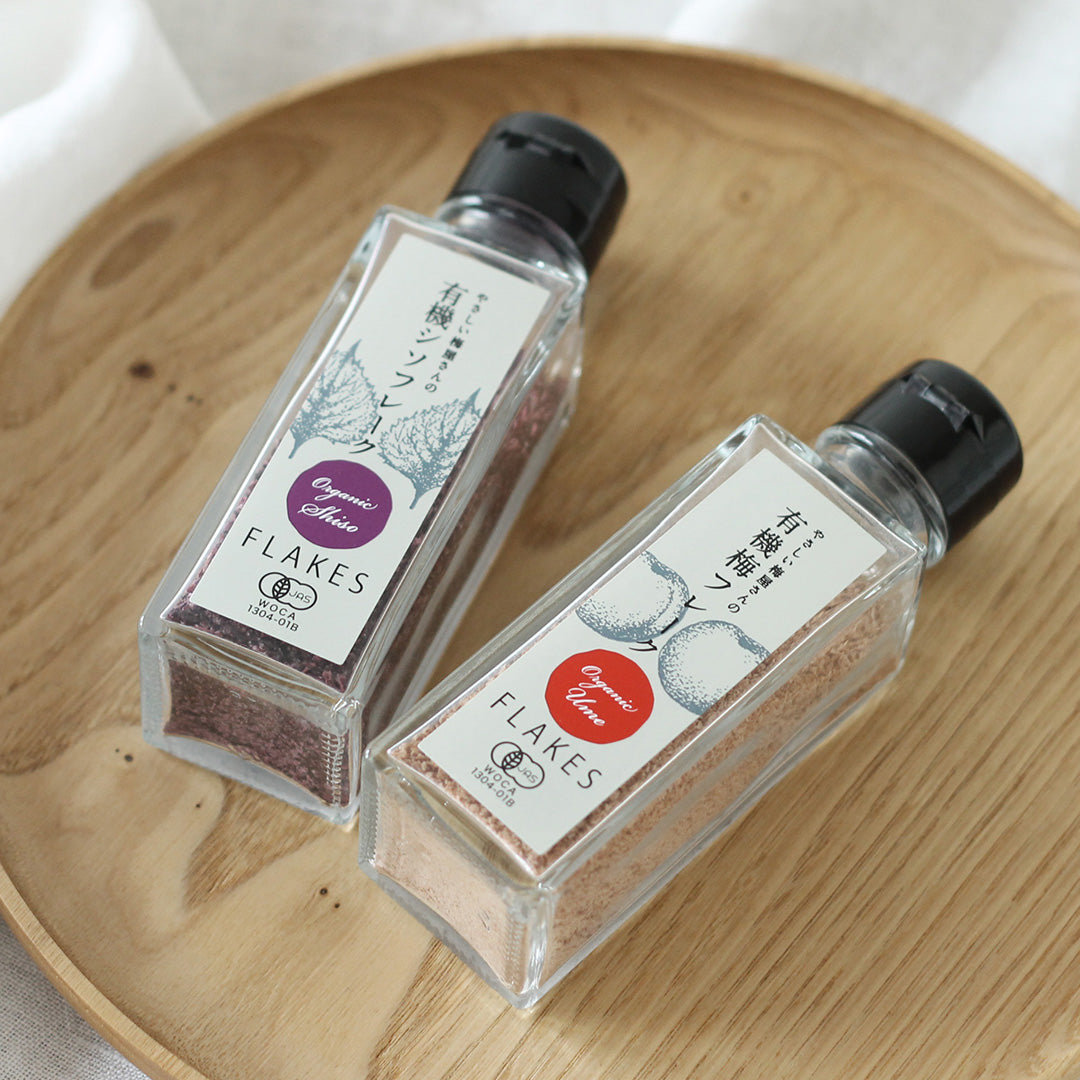 南高梅の産地、和歌山でも数少ない有機栽培の梅づくりに取り組むやさしい梅屋さん。パラリとひと振りすれば口いっぱいに風味と味が広がる、シソフレークと梅フレークをご紹介します。