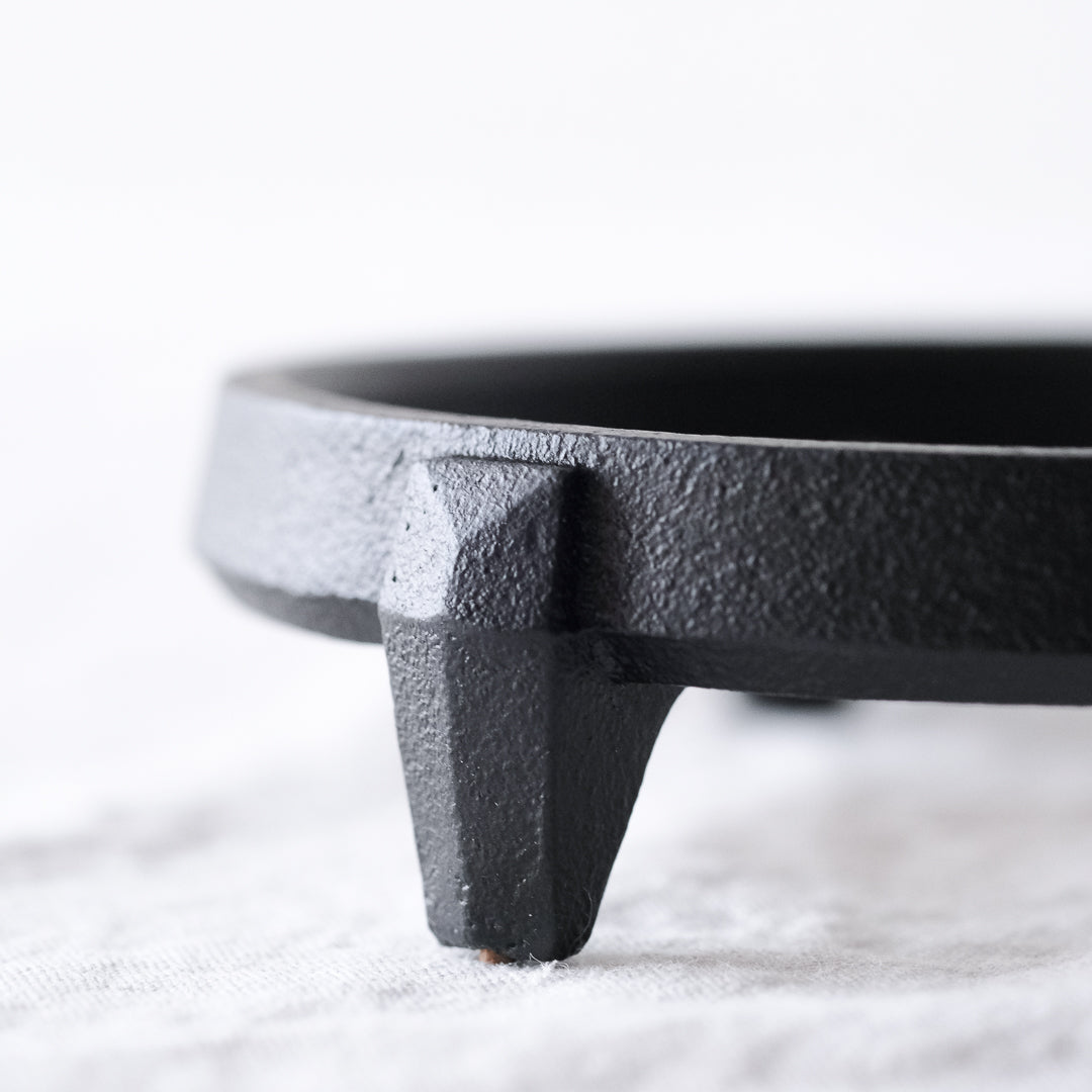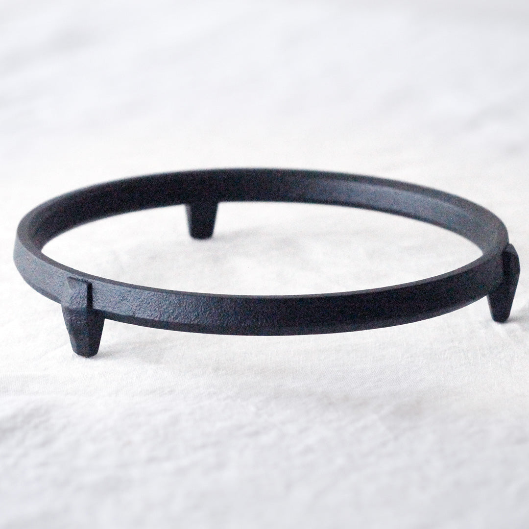 南部鉄器で有名な鋳物の街、岩手県水沢の工房でつくられた鋳物製の鍋敷。五徳のようなデザインの鍋敷は適度な重量があり高温の鉄瓶や鍋をそのままのせてもぐらつかず安心です。