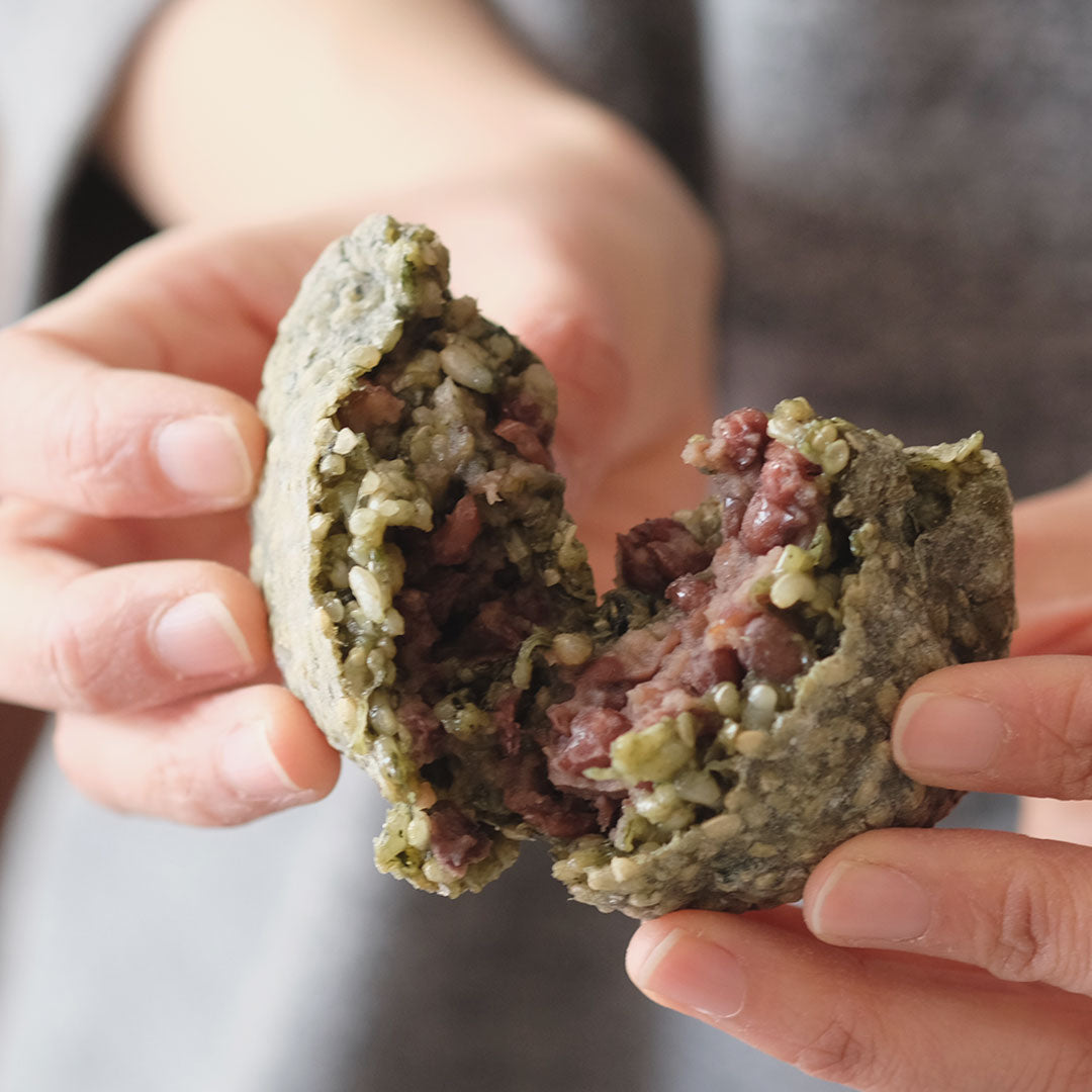 古来から万能薬として用いられ、道端でよく見かけるよもぎ。新芽の時期に摘み取ったよもぎを使用した玄米もちは、春の息吹を感じさせるさわやかな香りと、いつかどこかで食べた昔懐かしい味わいです。