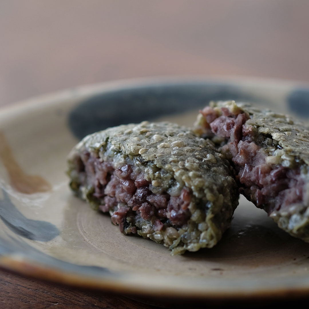つぶつぶが弾ける食感の玄米もちで包んだあんこは農薬不使用の小豆を使用。和三盆の原料からできる白下糖と甜菜糖でじっくりと炊き上げ、自然な甘みに仕上げています。